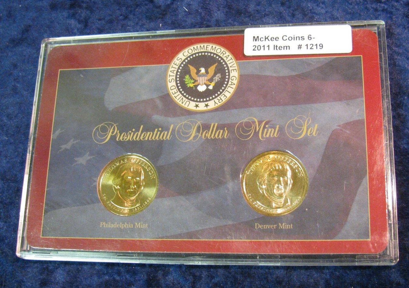 1219. Thomas Jefferson Dollar Set. In Fancy Holder.