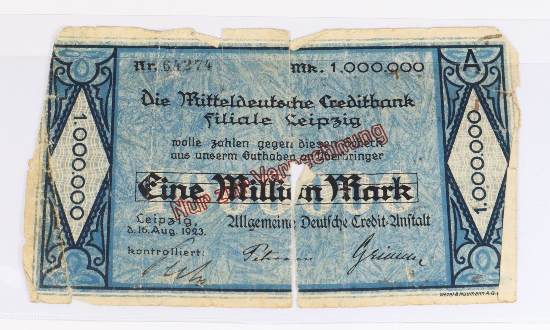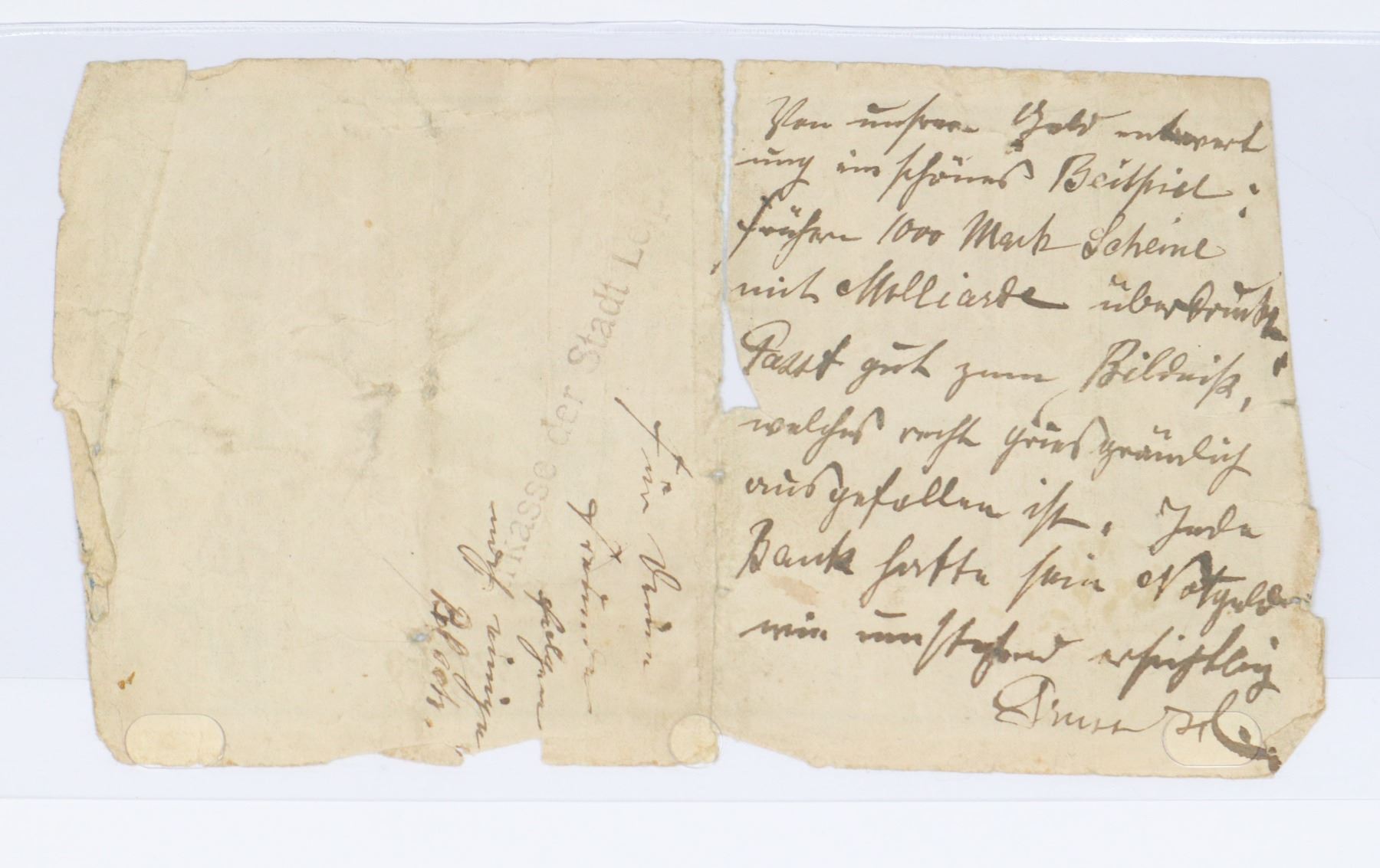HYPERINFLATION 1 SIDED W/ WRITING PAPER MONEY BILL NOTE GERMANY 1923