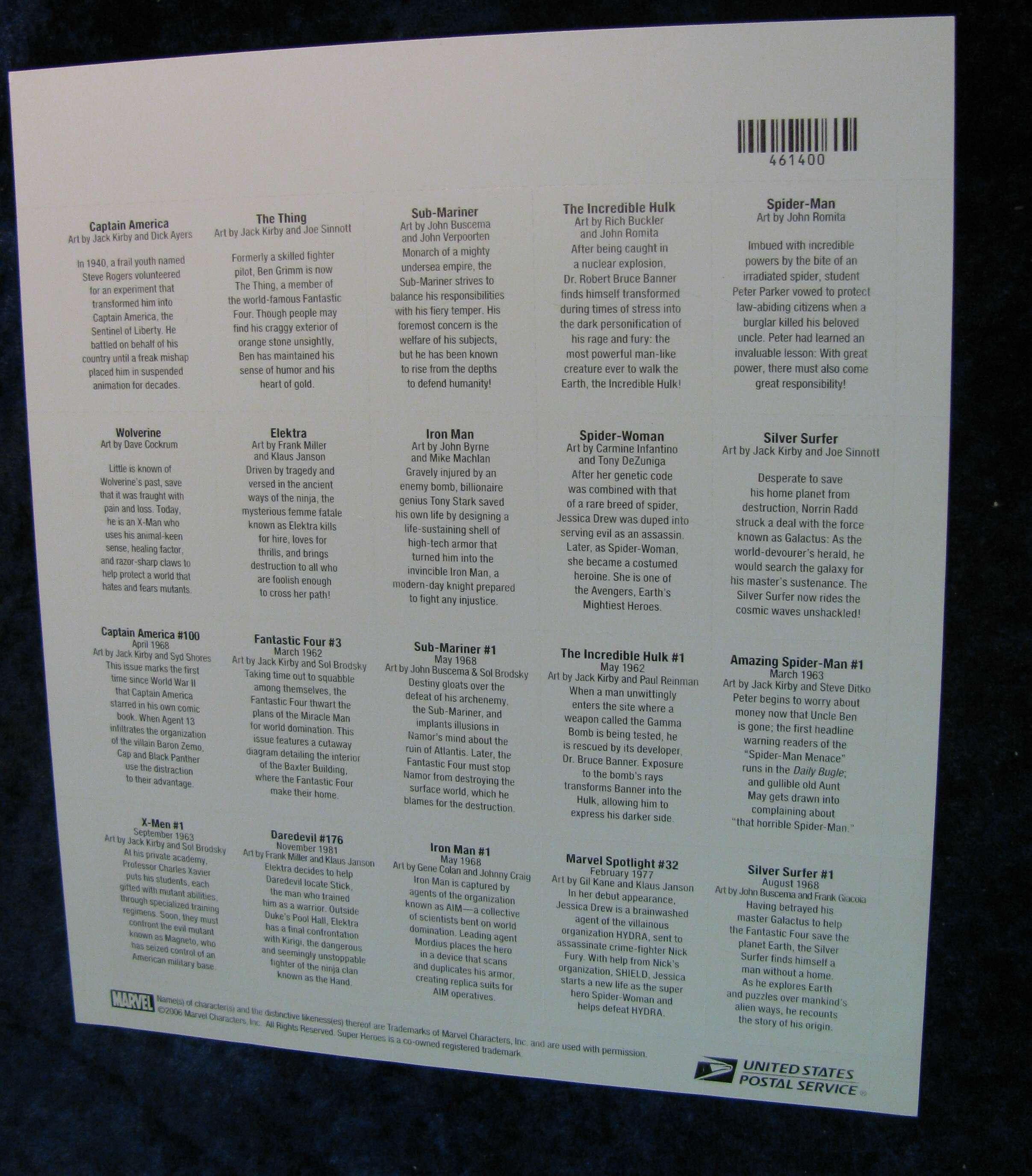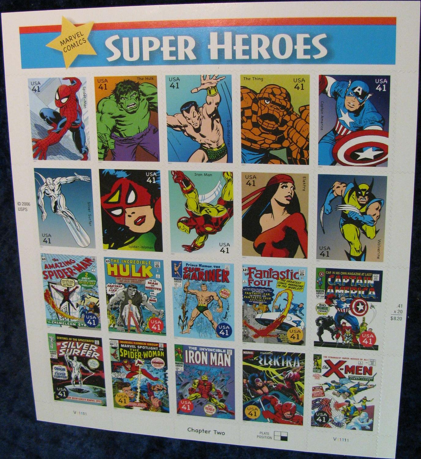 1222. Mint Sheet of 20- .41c Super Heroes Stamps.