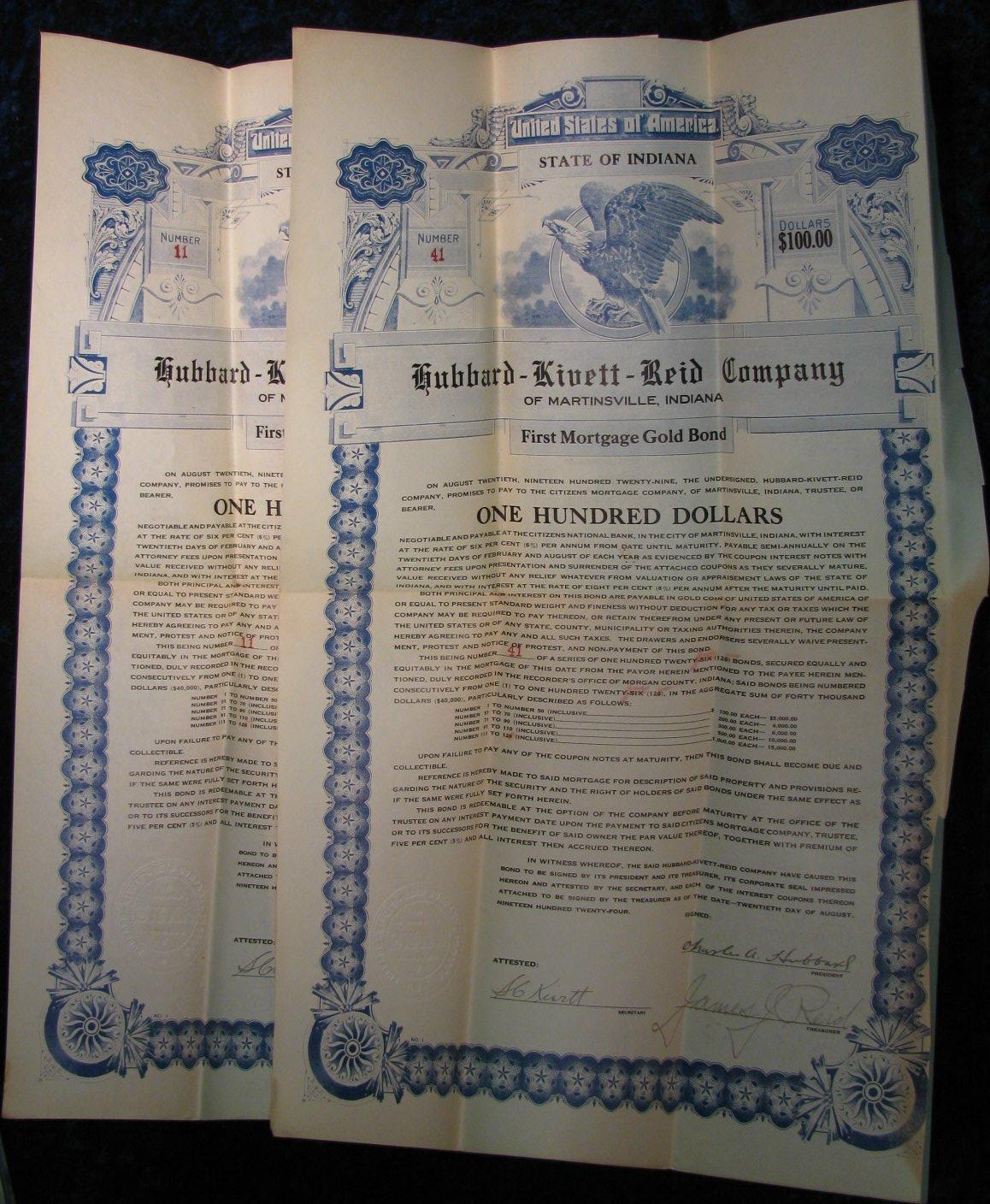 1223. (2) Hubbard-Kivett-Reid Co. Stock Certificates.