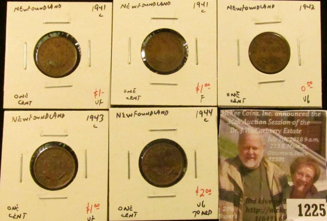 1225 . (5) Newfoundland Small Cents, 1941C VF, 1941C F, 1942 VG, 19
