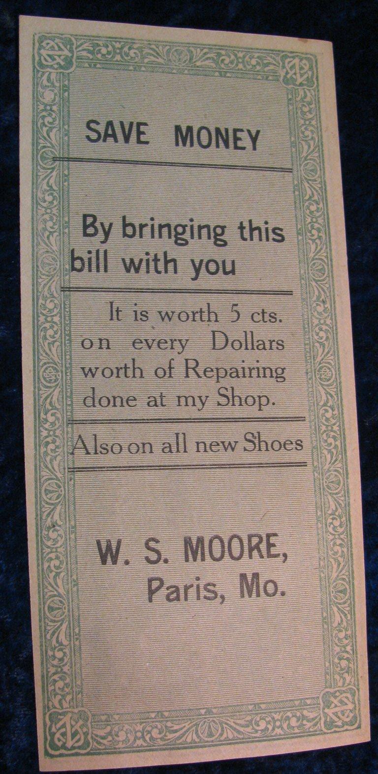 1227. Copy Confederate Advertising Note. W.S. Moore, Paris, Mo.