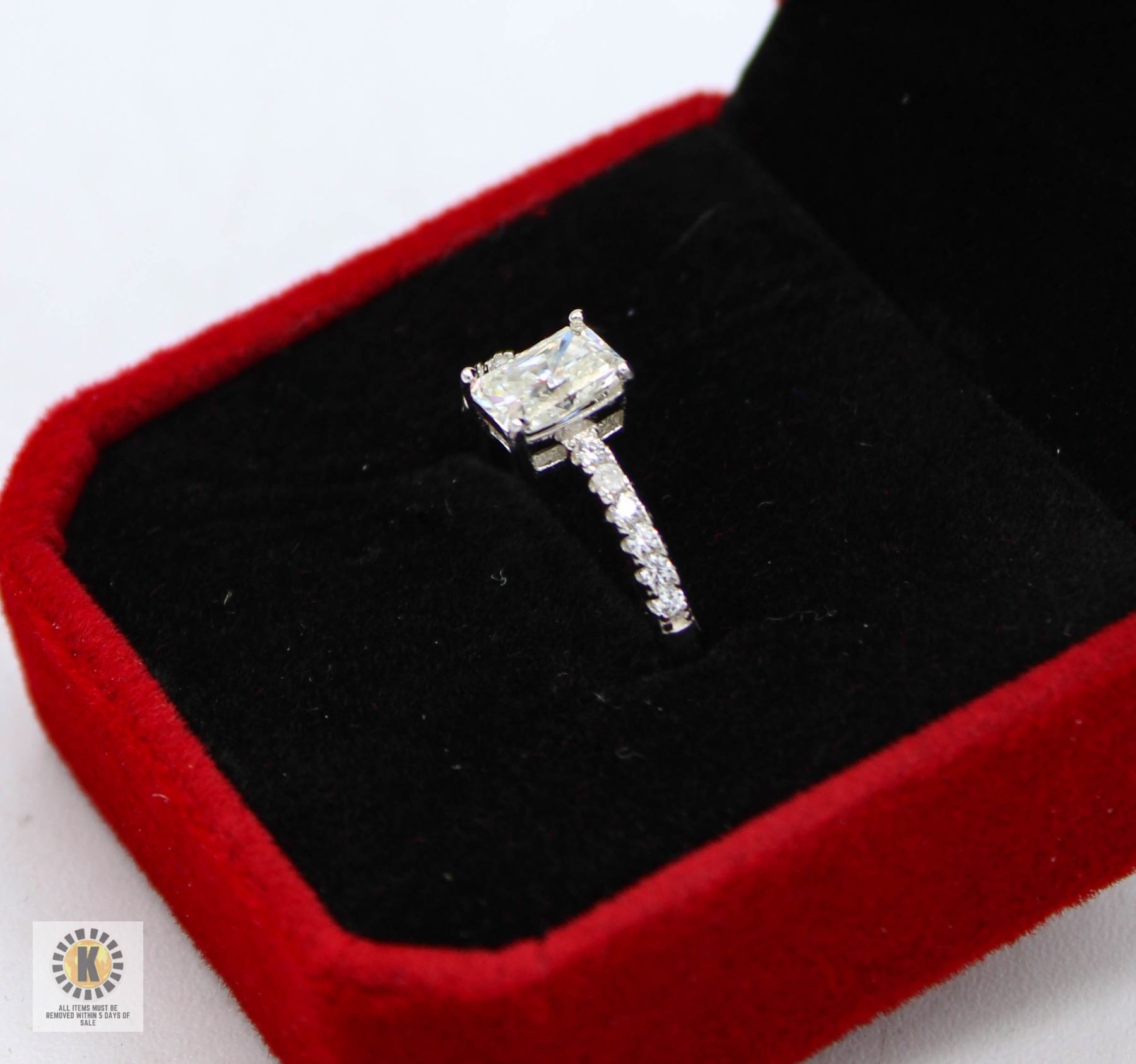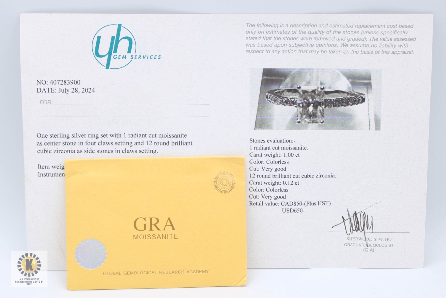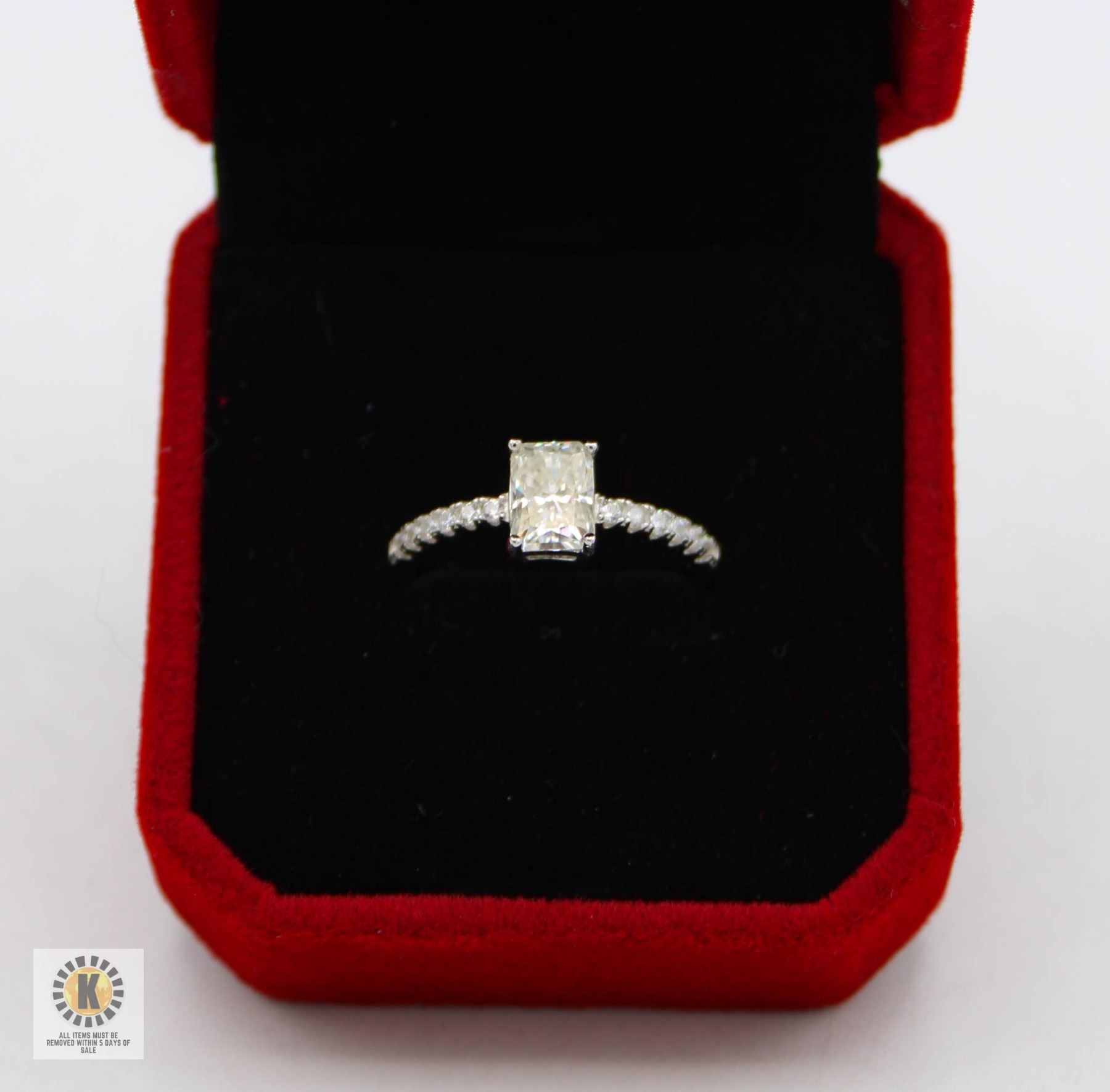 MOISSANITE STONE VVS D COLOR SET WITH 12 ROUND BRILLIANT CUT CUBIC ZIRCONIA?S SET IN SHANKS SET IN 925 SILVER RING SIZE 7 RETAIL VALUE $850.00