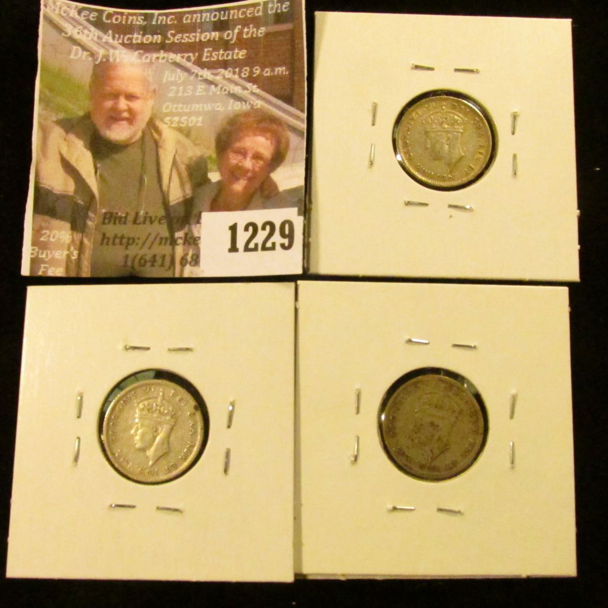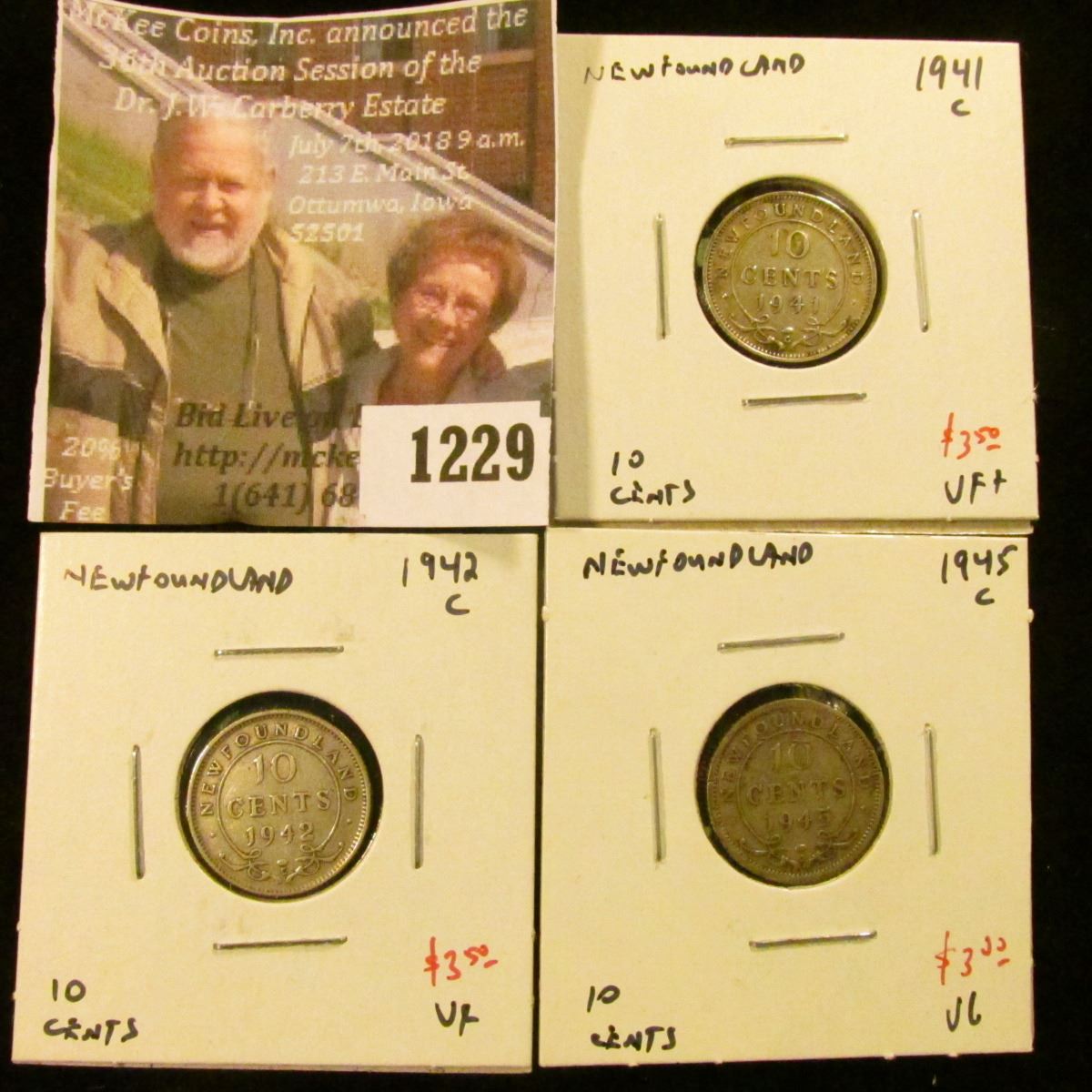 1229 . (3) Newfoundland 10 Cents, 1941C VF+, 1942C VF, 1945C VG, gr