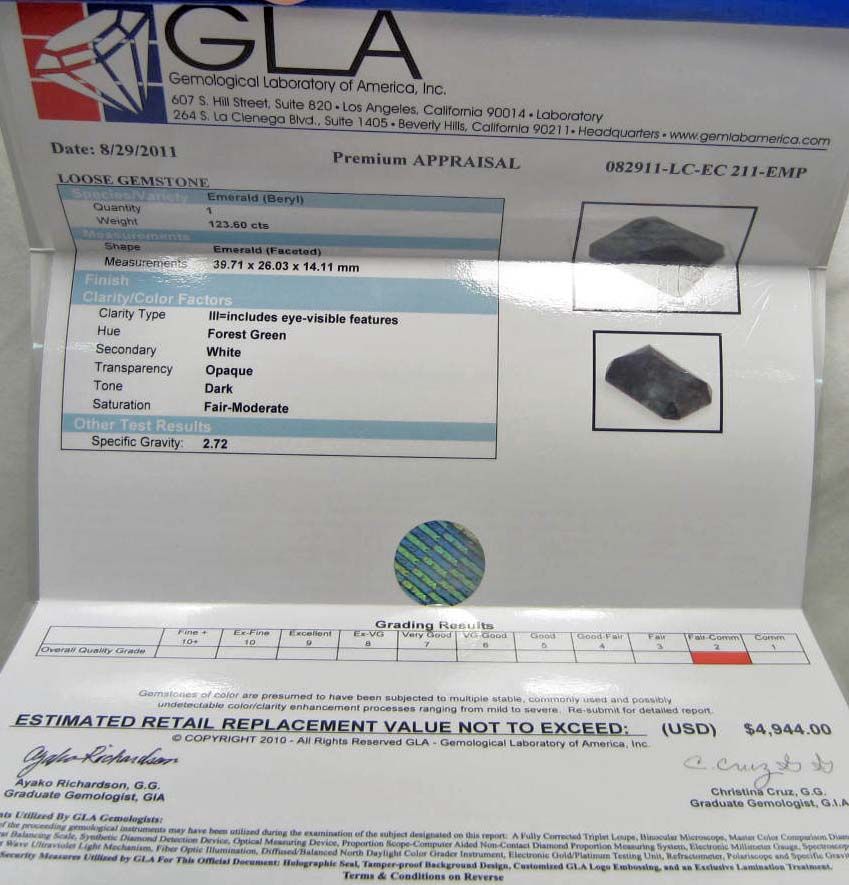 Comes w/ GLA Appraisal of $4.944.00. 39.71 by 26.03 by 14.11 mm.