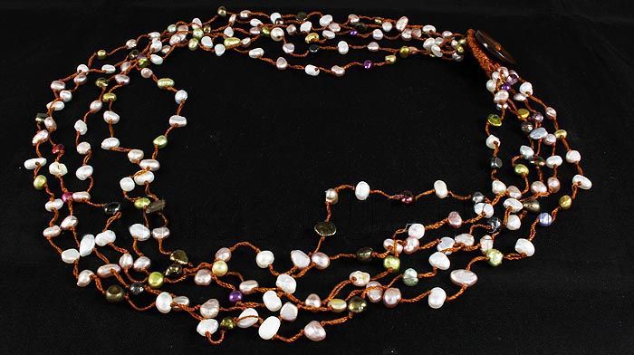 123.71CTW Multi Color Thread Freshwater Pearl Necklace **|**|** 19 inches Multi-color 5 Strand Thread Freshwater Pearl Necklace w/ Botton Lock ; MSRP: $300