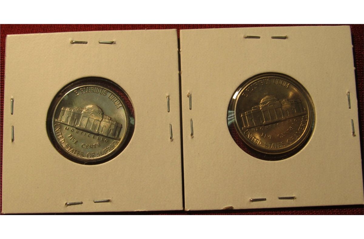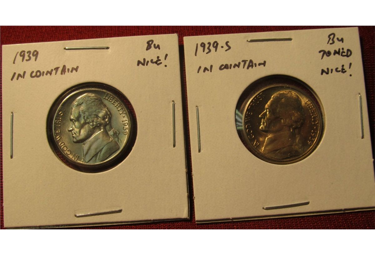 1230. 2 Jefferson Nickels - 1939 P BU & 1939-S BU toned, part of set break, all in Cointains
