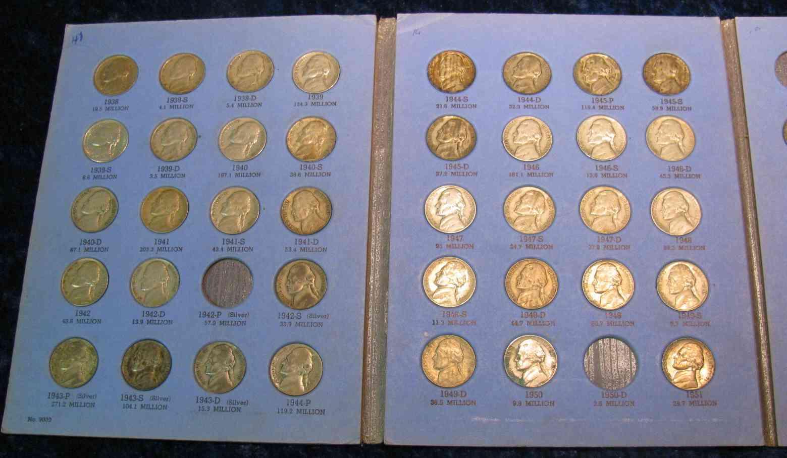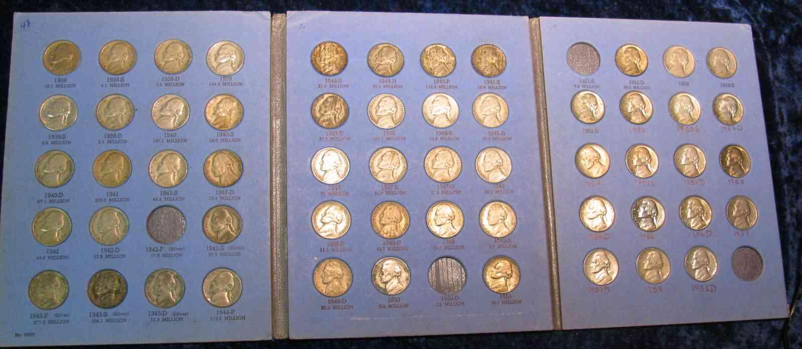 1233. Partial Set Jefferson Nickels. 1938-58 Short 1942P, 50D & 51S 56-Coins In Wnitman Coin Folder.