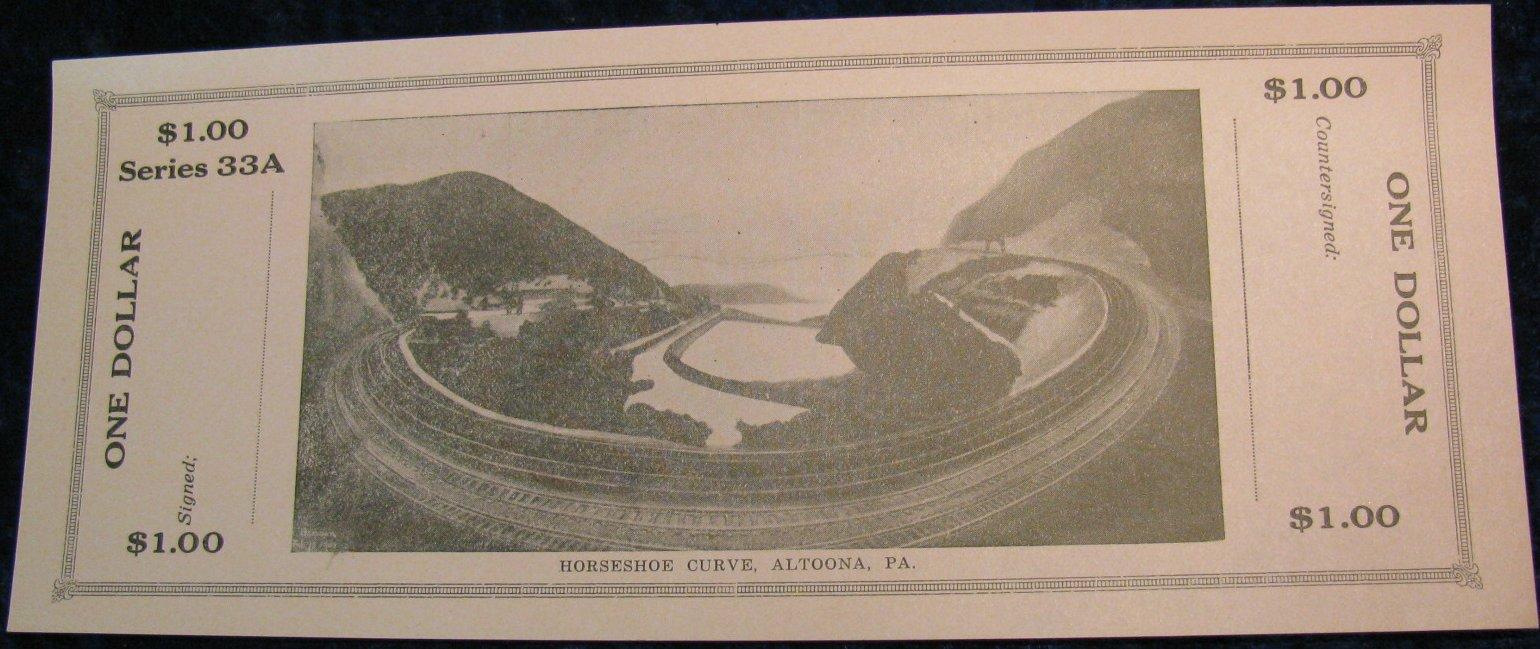 1234. 1933 Horseshoe Curve Altoona, Pa $1. Depression Script.