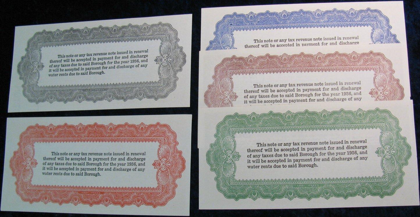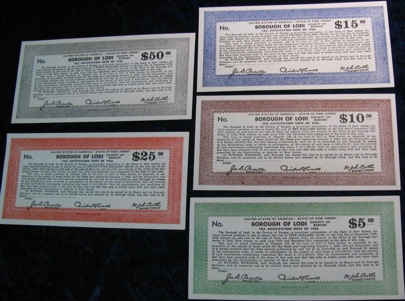 1235. Set of 5 1936 Lodi, NJ. Depression Scripts.