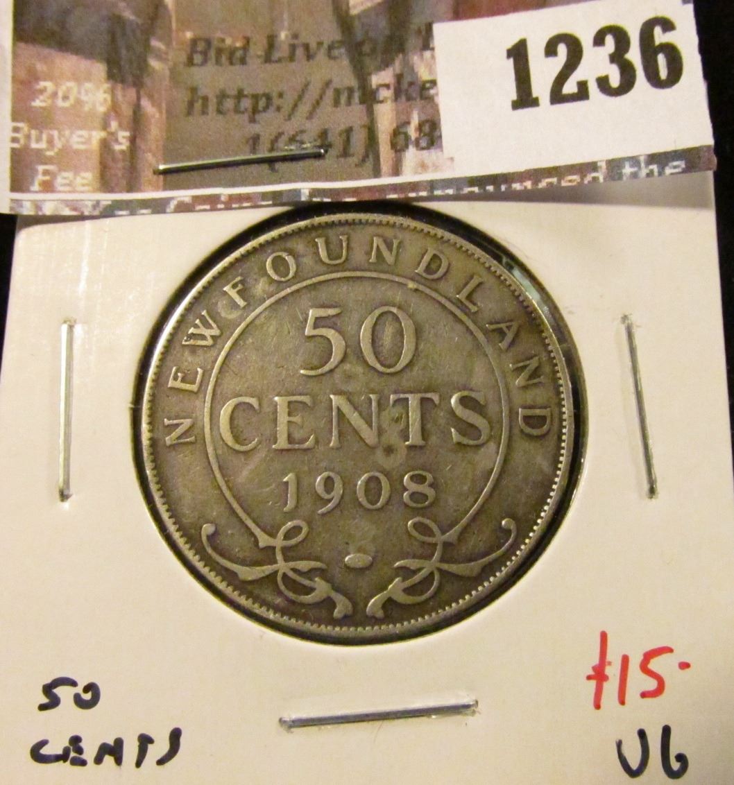 1236 . 1908 Newfoundland 50 Cents, VG, value $15