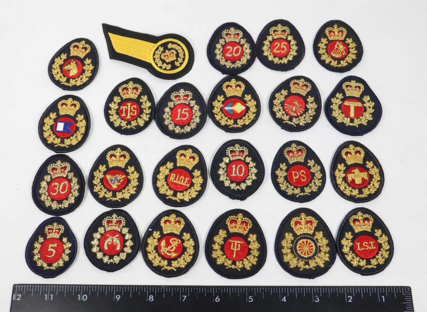 ASSORTED UNIFORM CLOTH INSIGNIA BADGES LOT OF 23 CANADA CANADIAN LAW ENFORCEMENT POLICE INSIGNIA LATE 20TH CENTURY