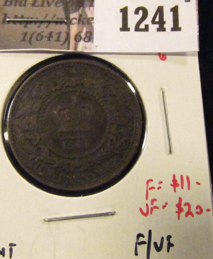 1241 . 1864 short 6 New Brunswick One Cent, F/VF, F value $11, VF v