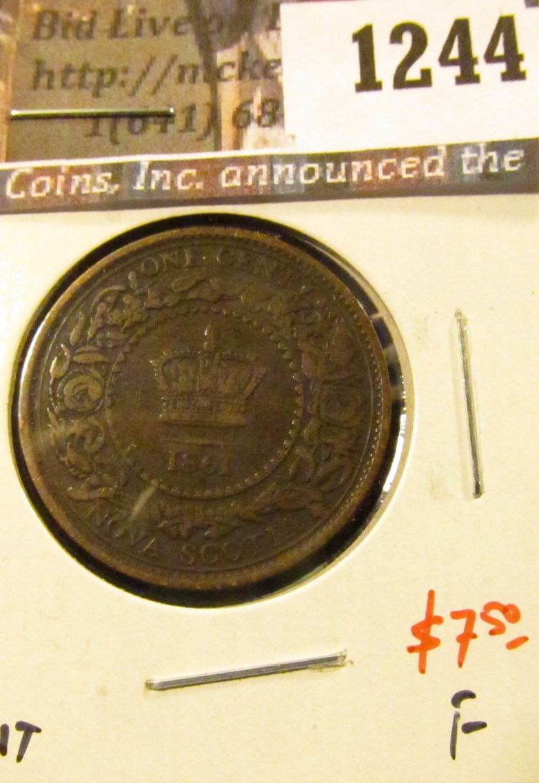 1244 . 1861 Nova Scotia One Cent, F, value $7+