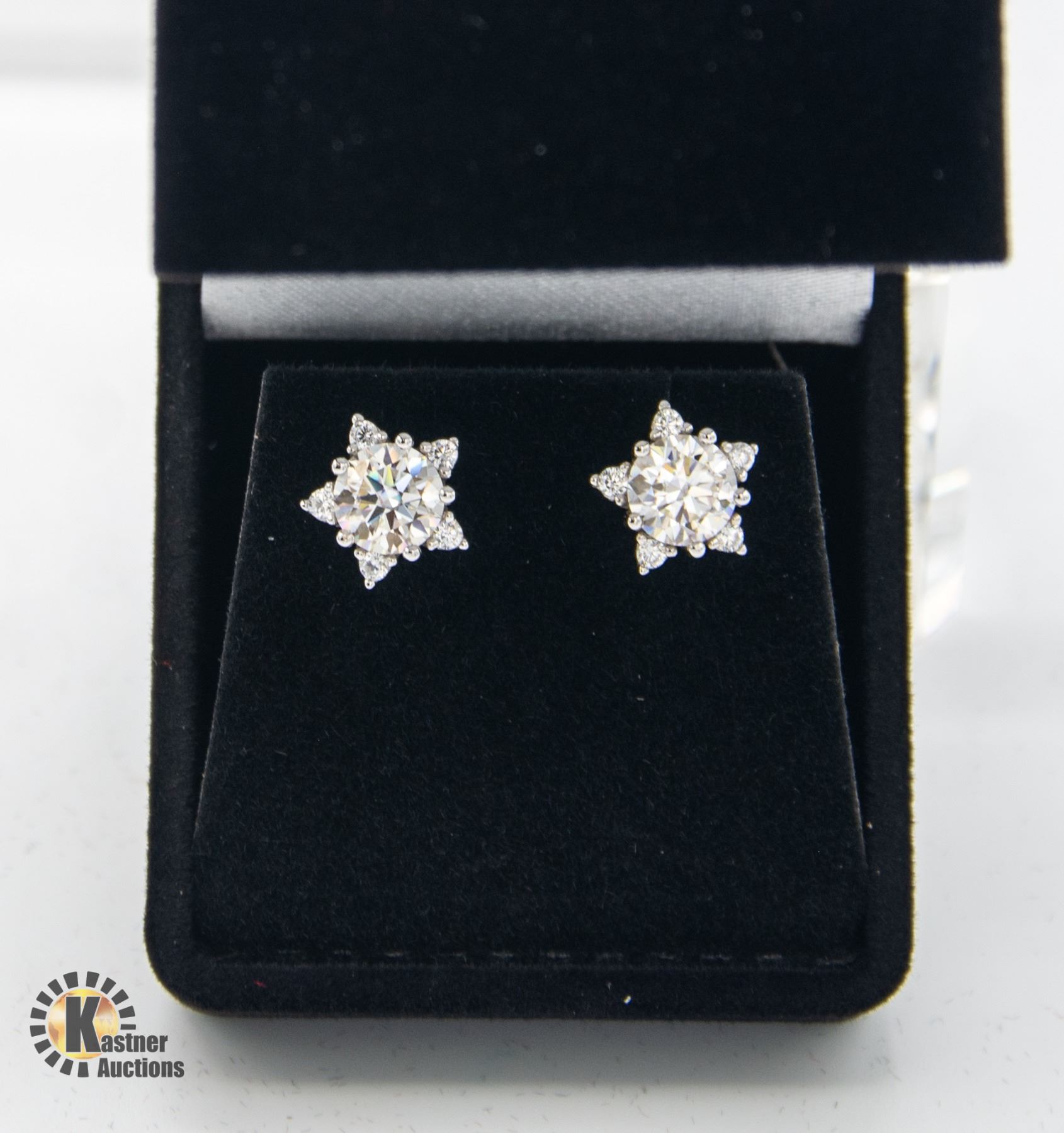 CUT MOISSANITE STONE VVS D COLOR SET IN CENTER OF STAR DESIGN IN 925 SILVER EARRINGS