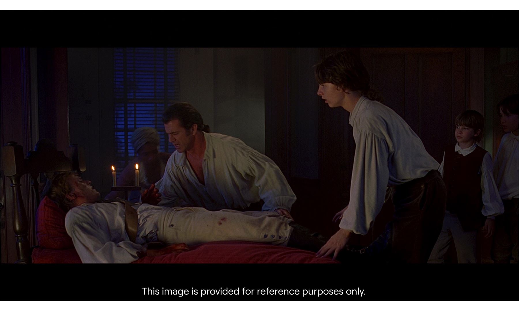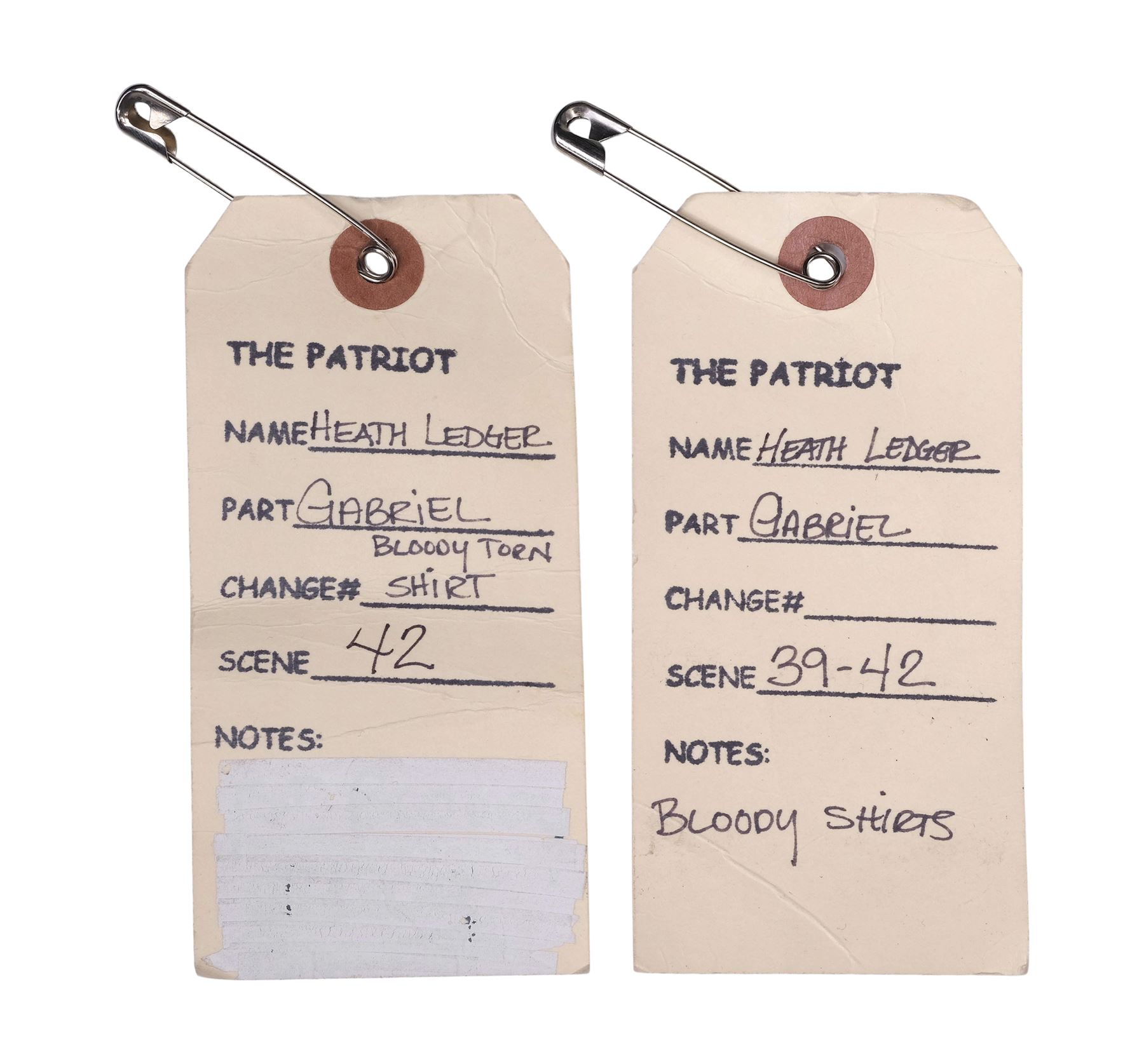 THE PATRIOT (2000) - Gabriel Martin's (Heath Ledger) Bloody Shirt - Gabriel Martin's (Heath Ledger) bloody shirt from Roland Emmerich's The Patriot. Two years after enlisting, the wounded Gabriel wore his bloodied shirt as he arrived home and was attended to by his father, Benjamin Martin (Mel Gibson).