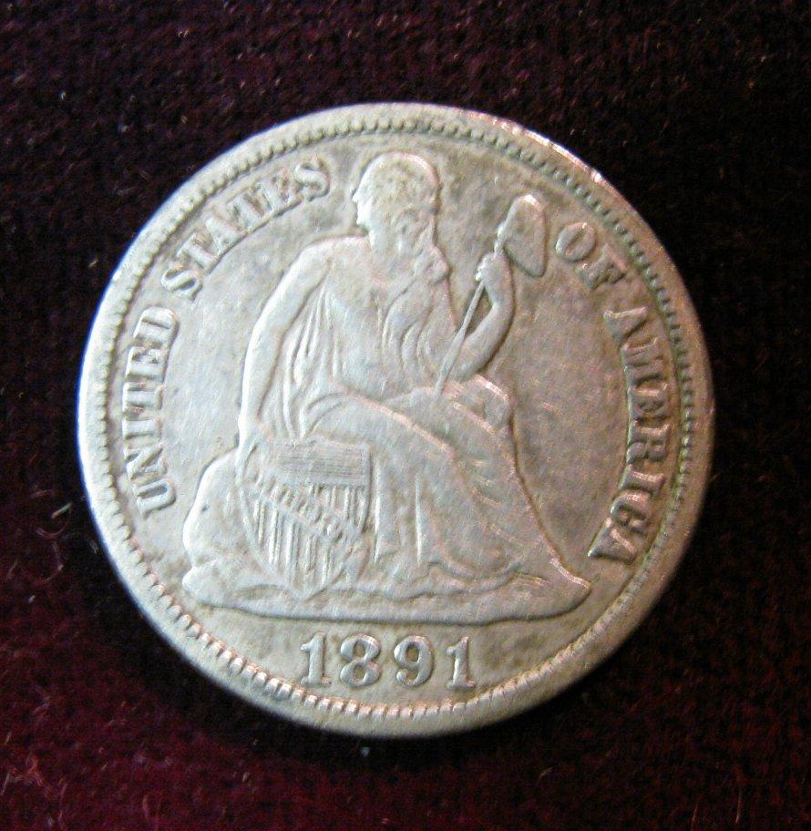 1246. 1891S Liberty Seated Dime. VF-EF.