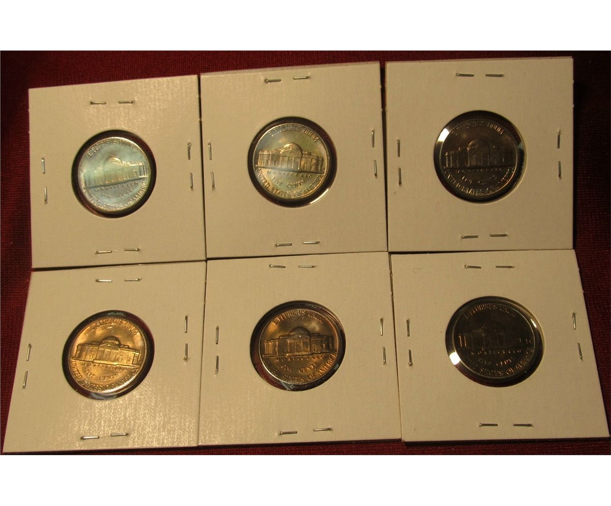 1247. 6 Jefferson Nickels – 1959 PD, 1960 PD & 1961 PD, all BU toned, part of set break, all in Coi