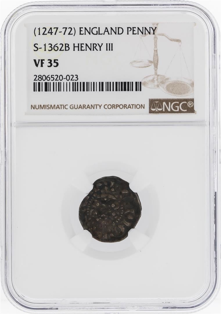 One 1247-72 England Penny S-1362B Henry III Coin NGC VF35. NGC Certified.