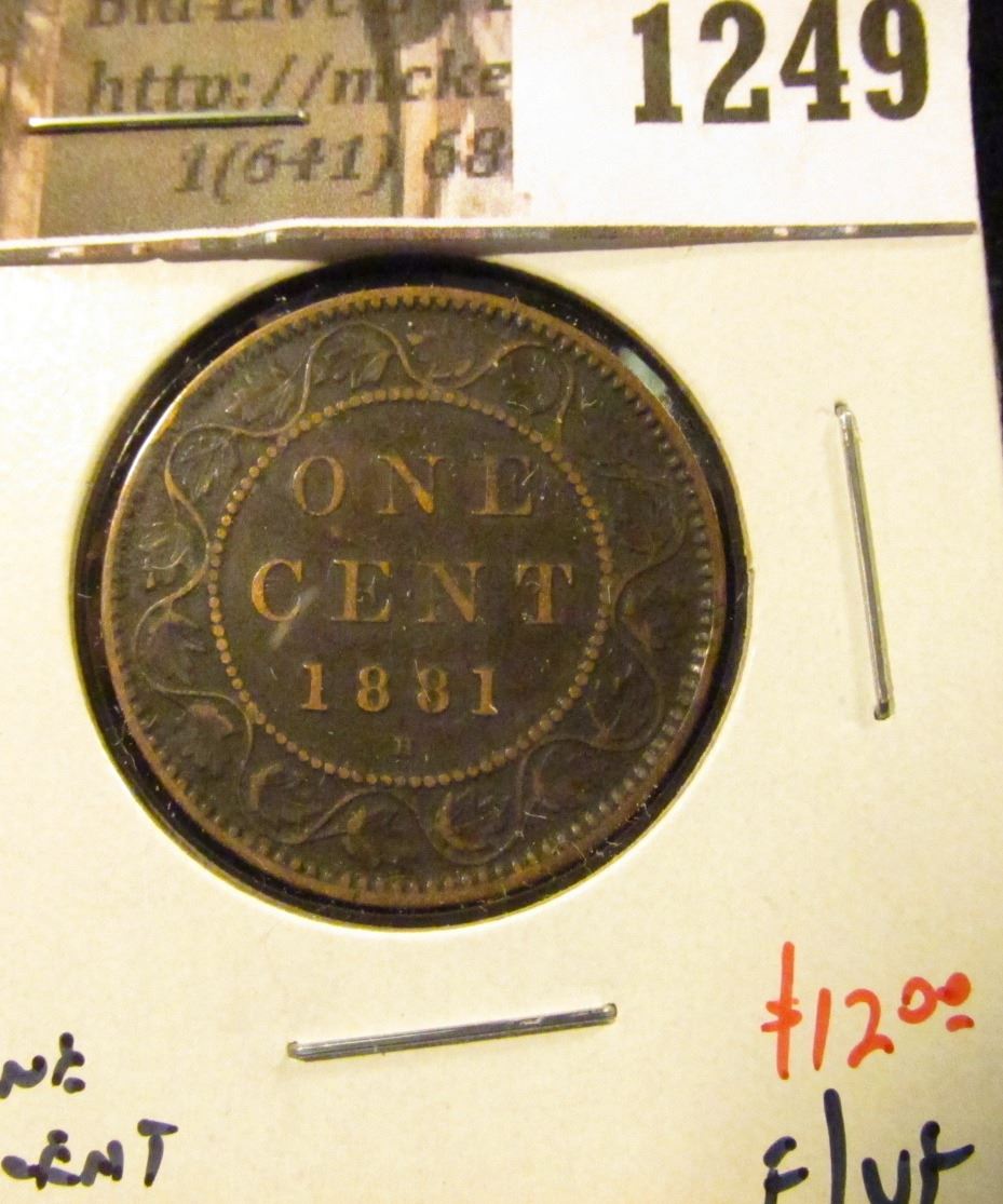 1249 . 1881H Canada One Cent, F/VF, value $12