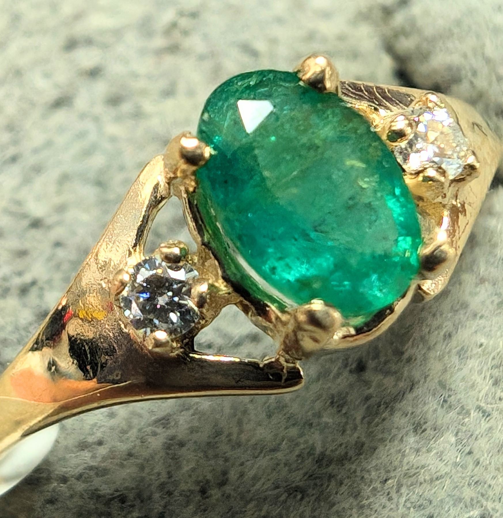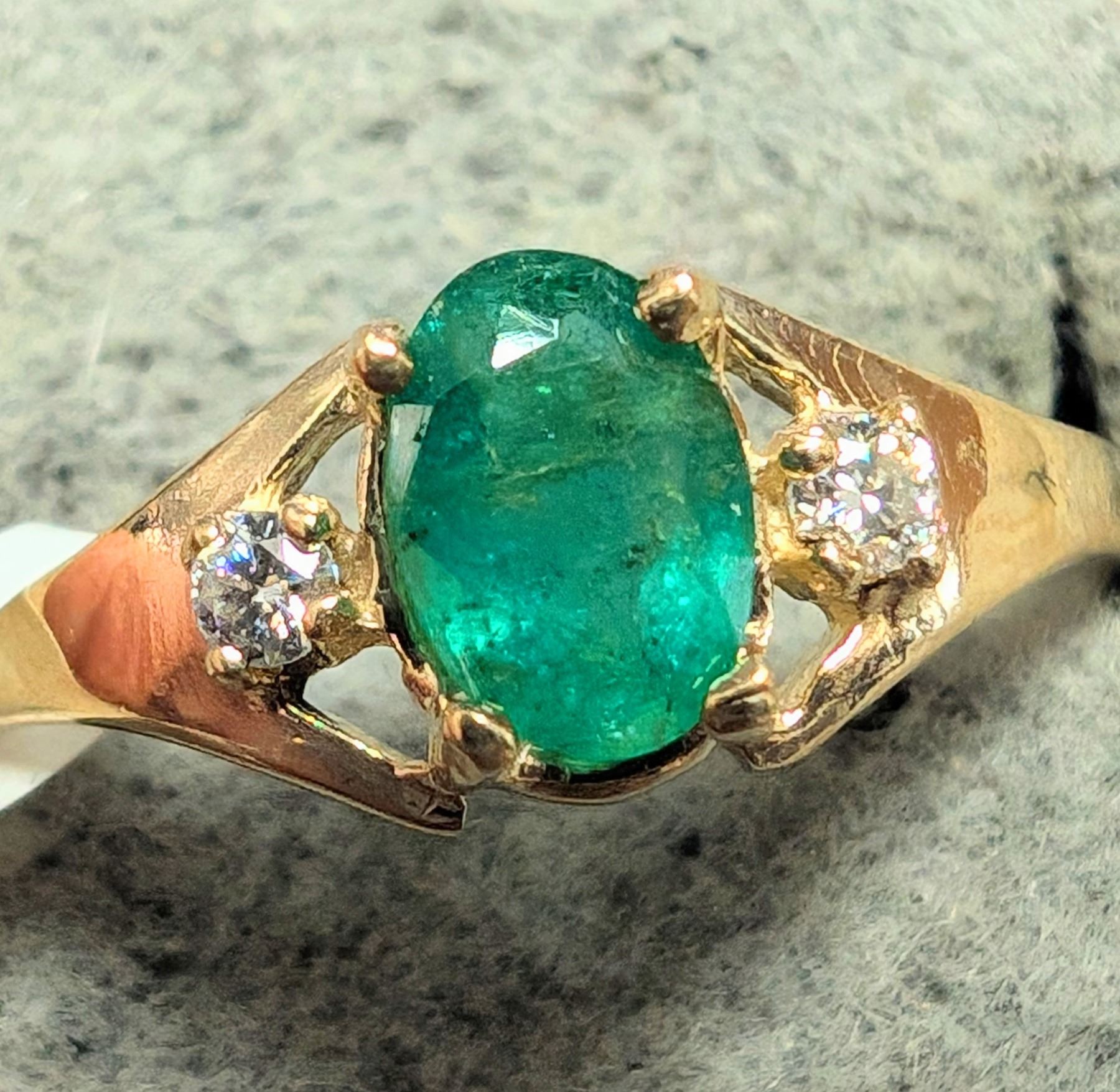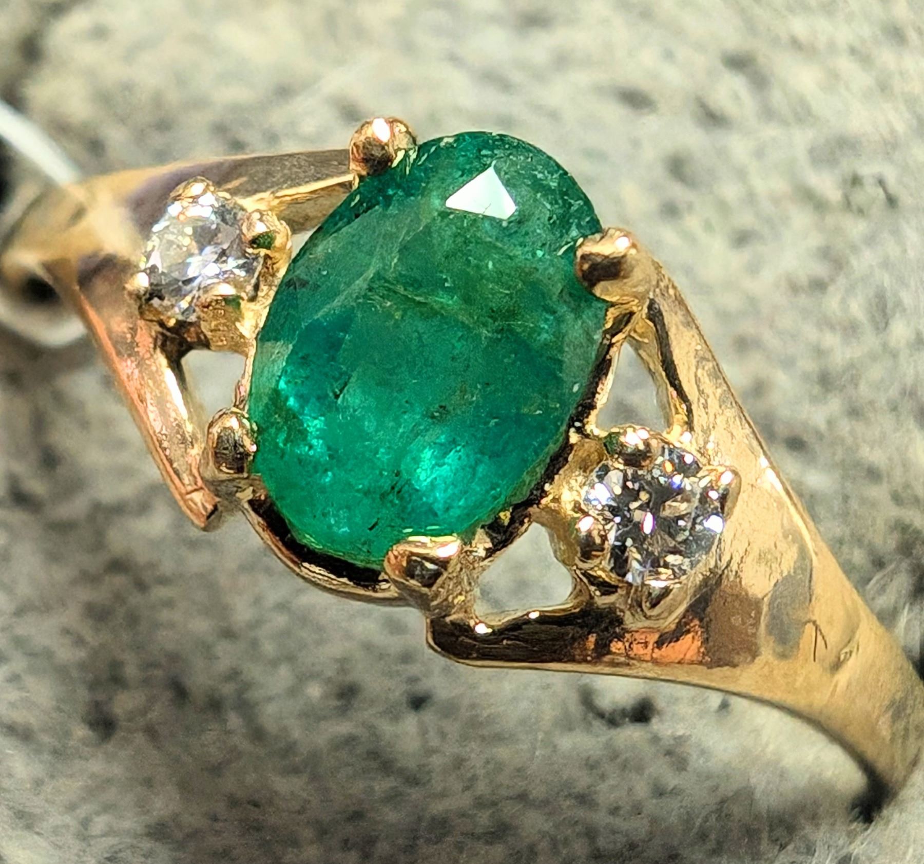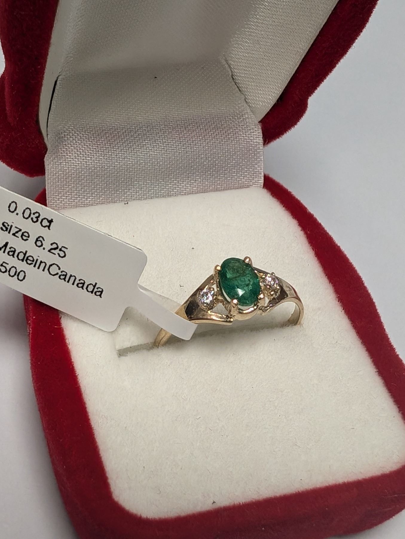 $1250, 10K(1.27g), EMERALD (0.4ct), DIAMOND (0.04ct) RING, appraised/retail value $1250