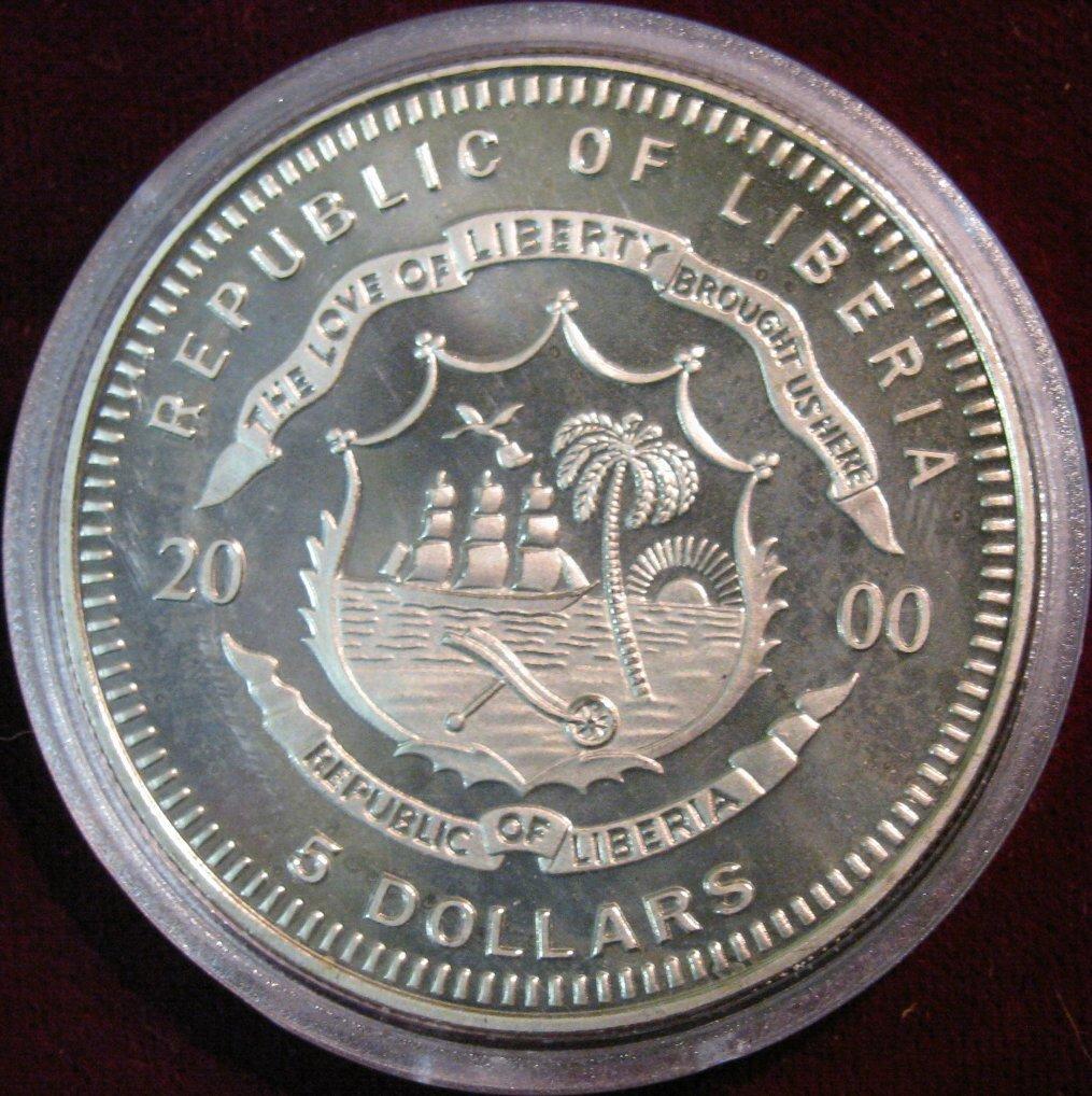1250. 2000 Republic of Liberia $5 "Europe 2000". 40mm. Encapsulated. BU.