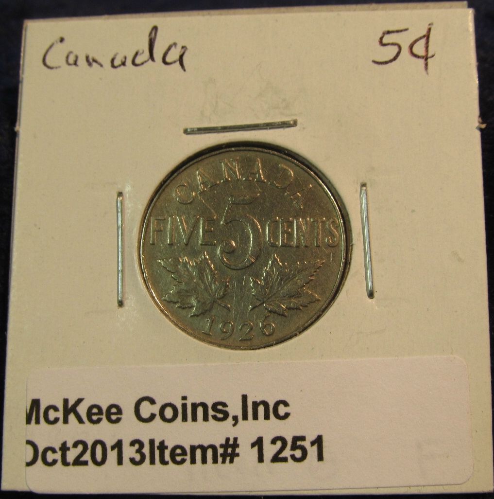 1251. 1926 Near 6 Canada Five Cent. Fine.