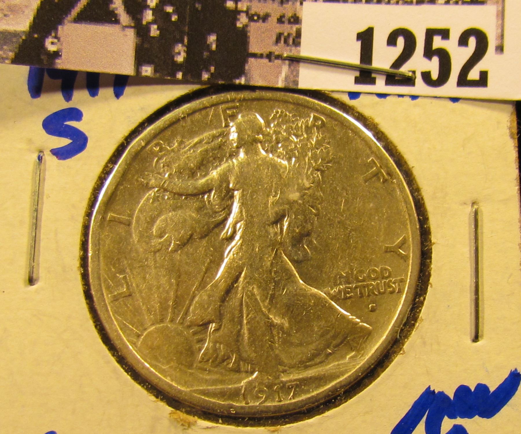 1252 . 1917-S Obverse Mint Mark Walking Liberty Half Dollar