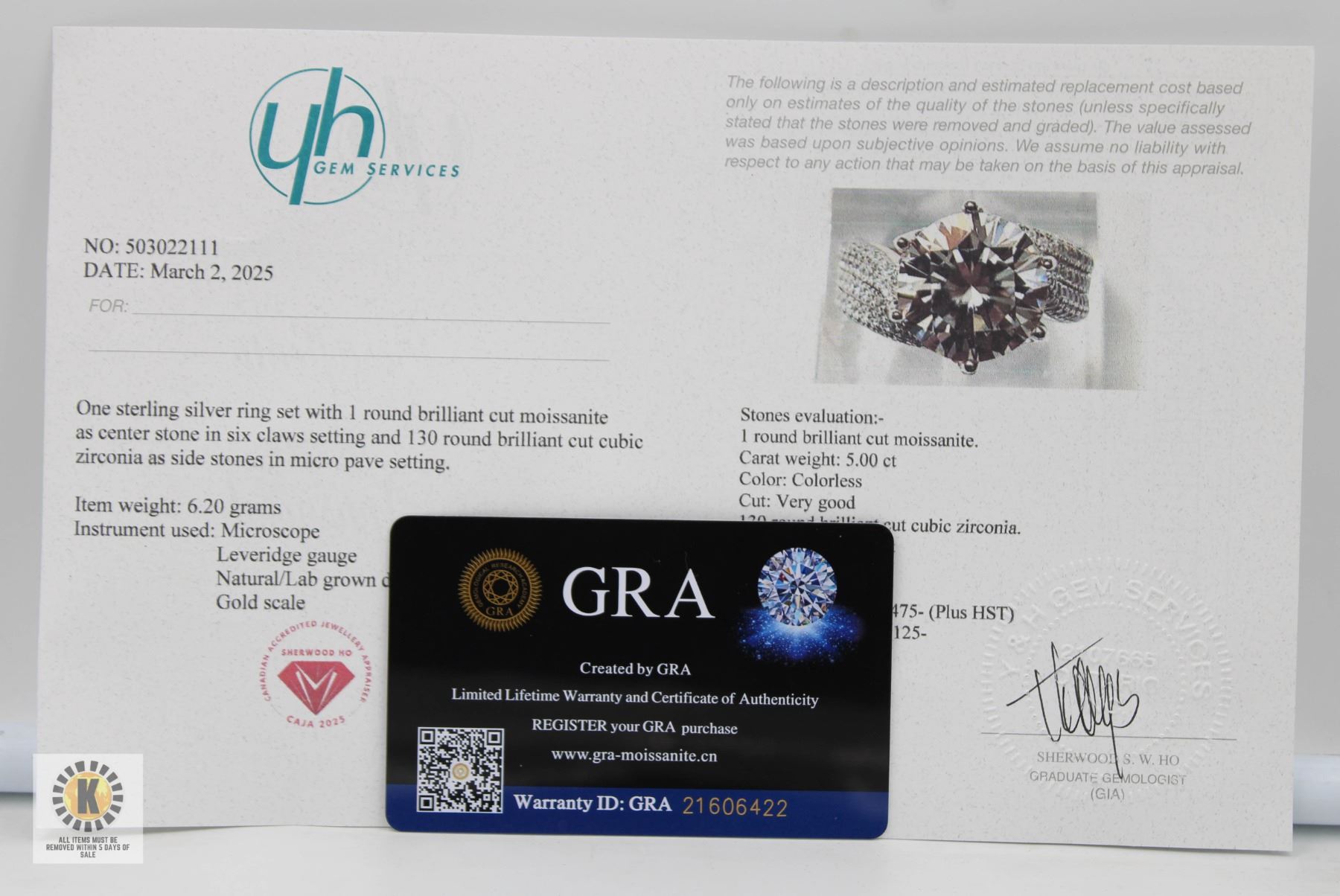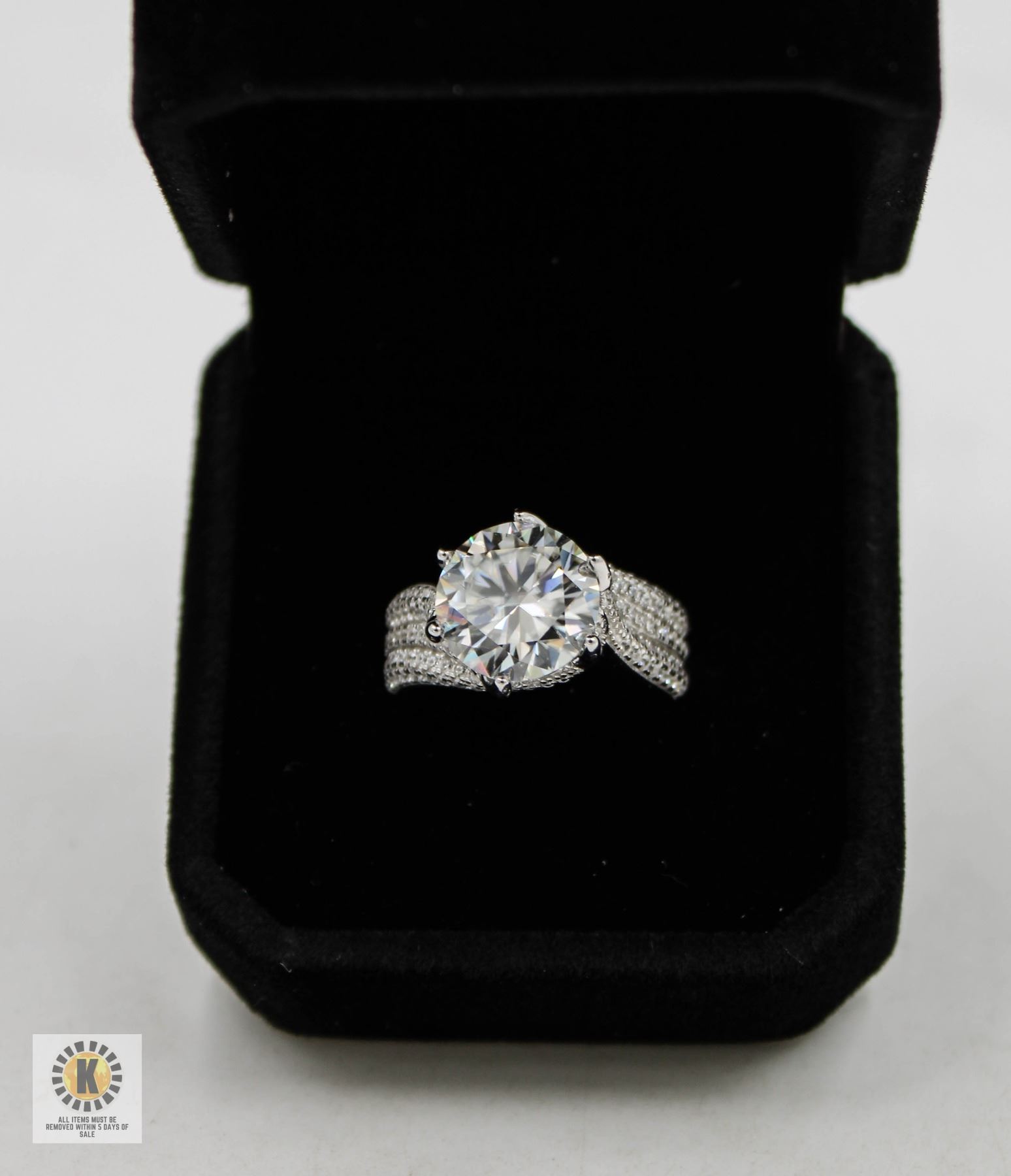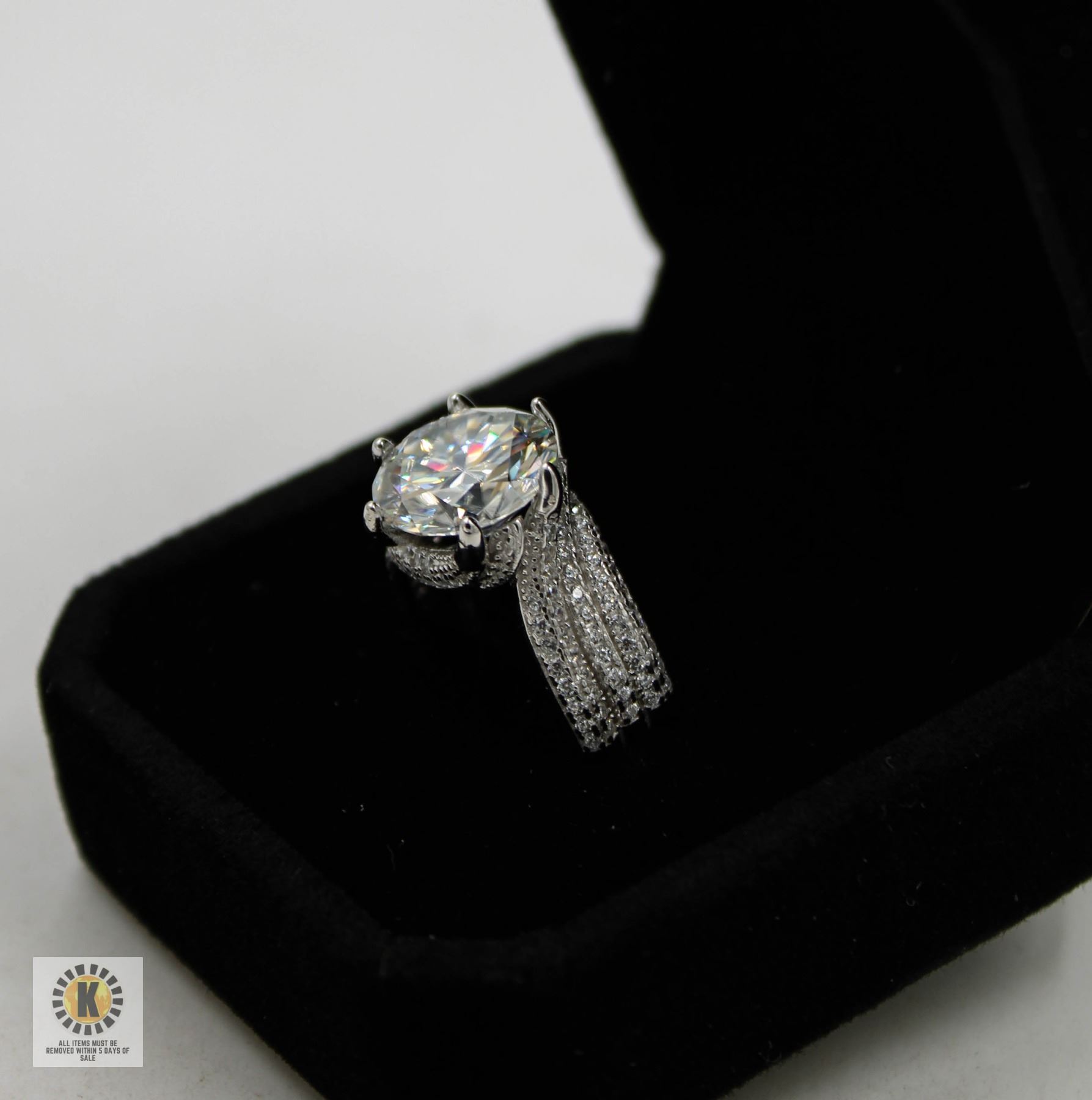 CUT MOISSANITE STONE VVS D COLOR SET WITH 130 ROUND BRILLIANT CUT CZ?S SET IN 925 SILVER RING SIZE 7 RETAIL VALUE $1,475.00