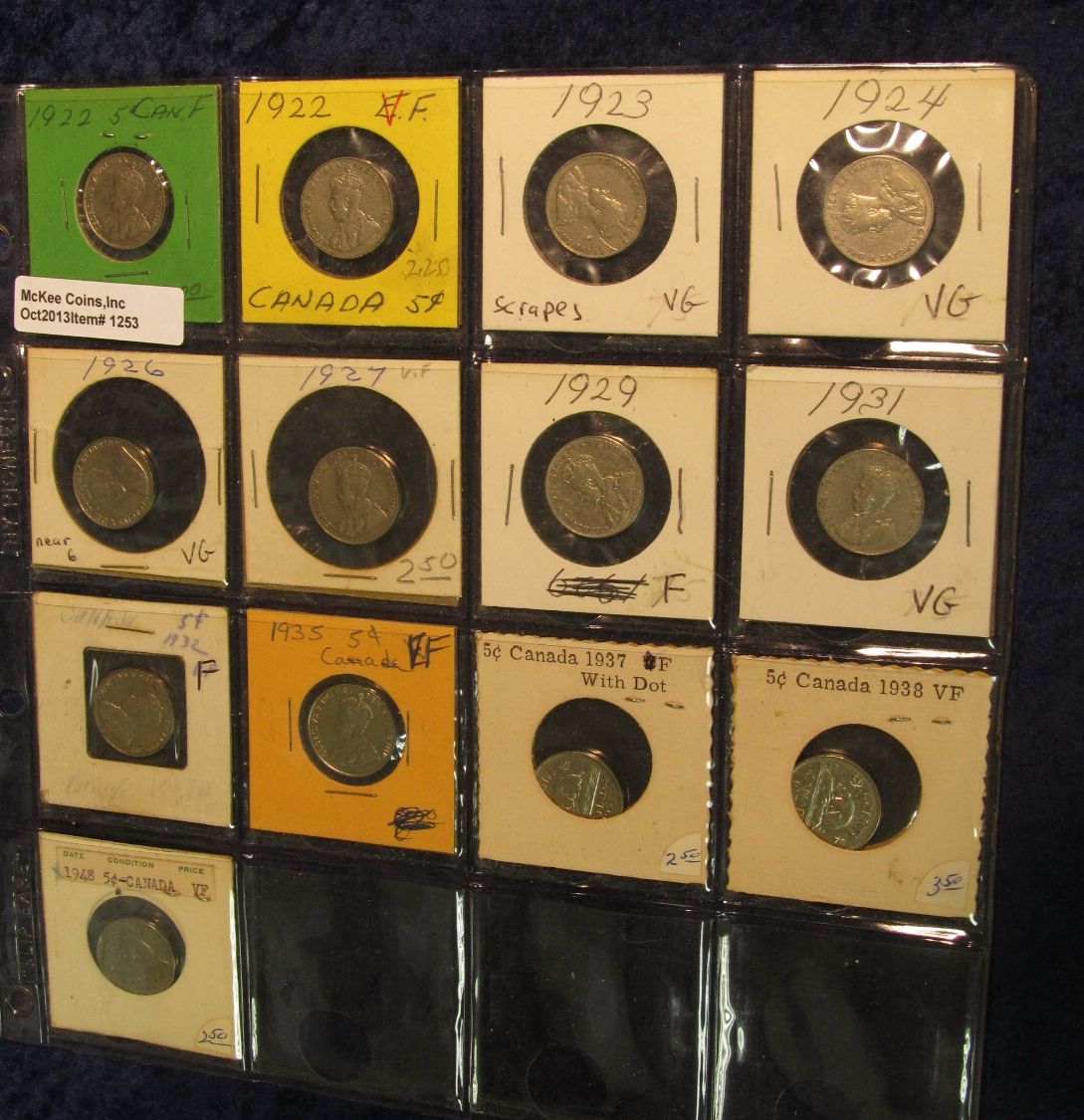 1253. Lot of 13 mixed Canada Nickels 1922-48 grading VG-EF.