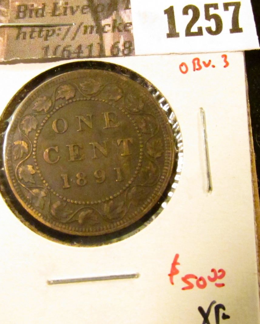 1257 . 1891 LD/LL Canada One Cent, Obverse 3, XF, value $50+
