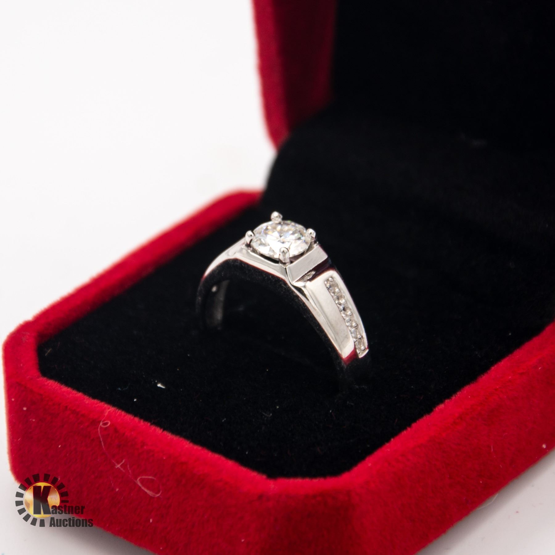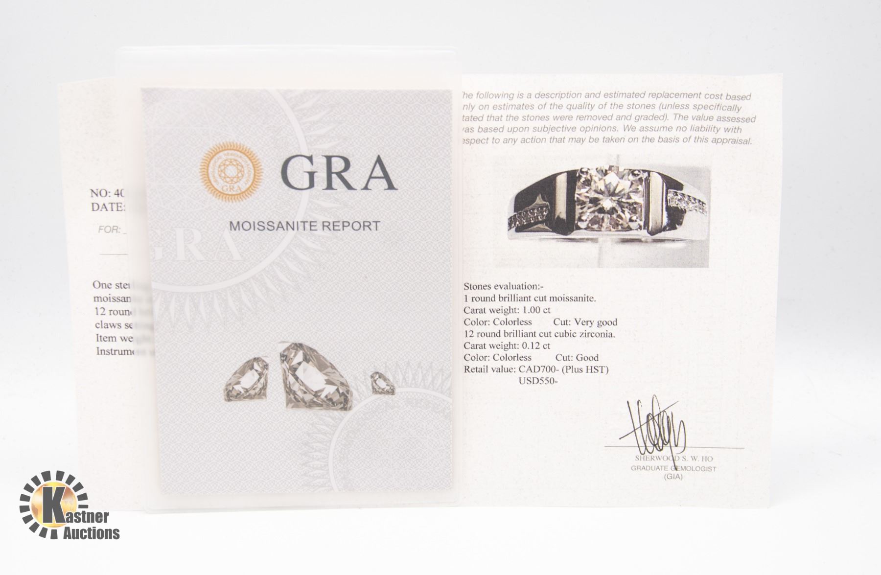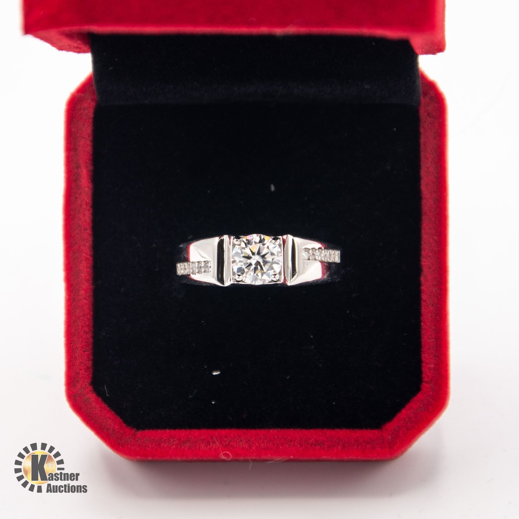 CUT MOISSANITE STONE VVS D COLOR SET IN CENTER OF 925 STERLING SILVER RING SIZE ADJUSTABLE RETAIL VALUE $700.00