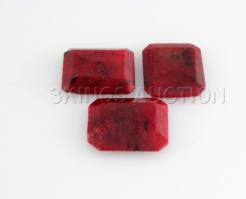 126.37ctw RubyEmeraldCut LooseGemstone lot of 3 **|**|** Mix Sizes 25-27x21-22x5-7mm Natural Ruby Gemstone Flat Emerald Shape lot of 3 ; MSRP: $400