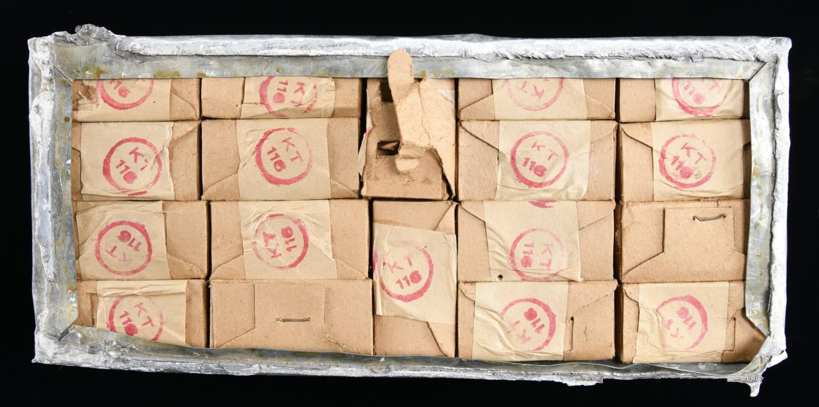 18 Boxes in 1 gray ammo can appearing Romanian. CONDITION: ammo can missing top portion, boxes in very good condition; ammo appears serviceable. (02-19787/MD). $500-800.