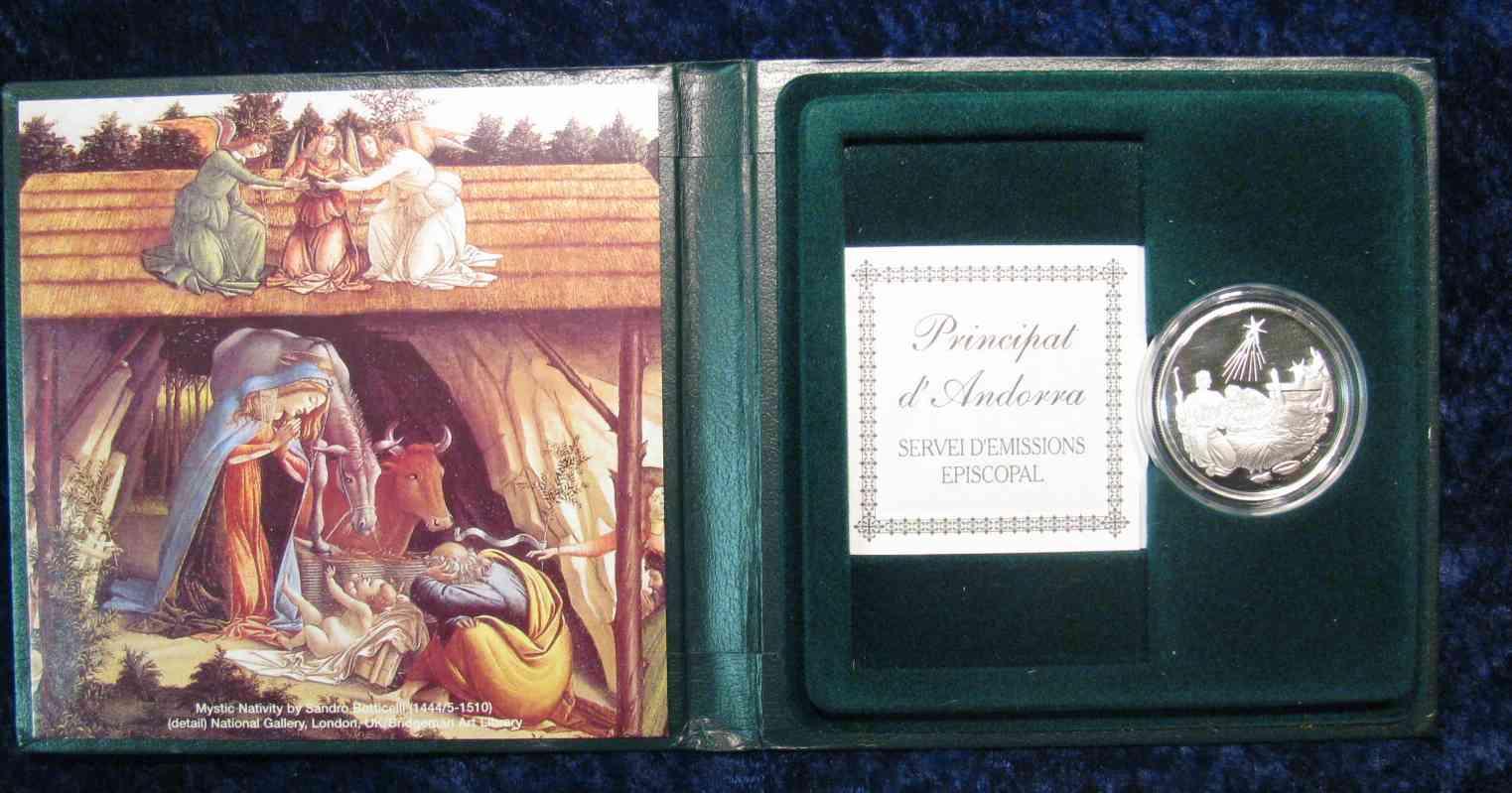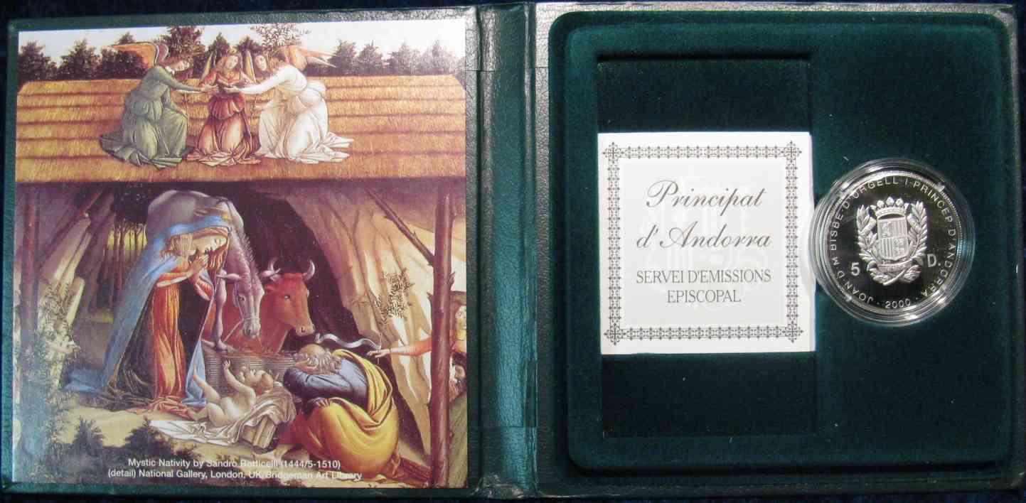 1261. 2000 Andorra Silver 5-Diners Nativity. Proof. Original as Issued.