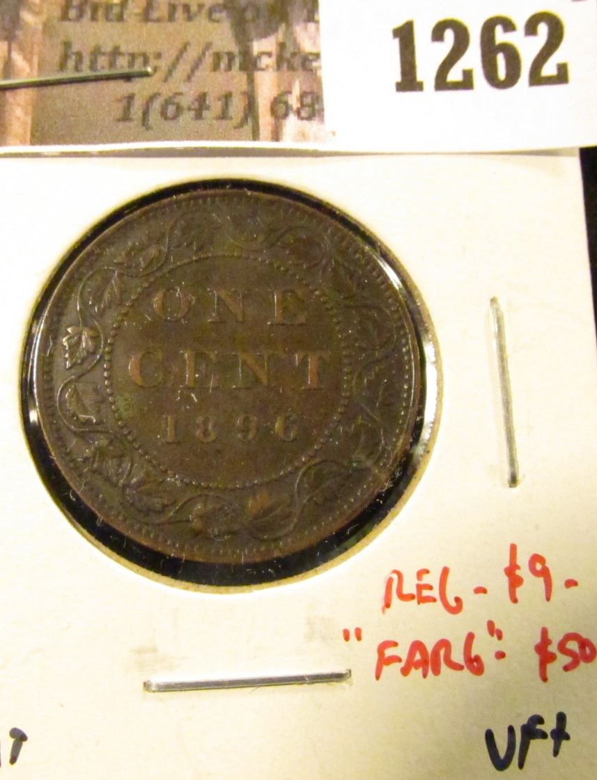 1262 . 1896 Canada One Cent, VF+, regular value $9, “Far 6” variety