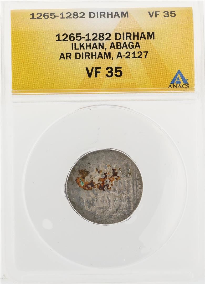 One 1265-1282 Dirham Ilkhan Abaga AR Dirham A-2127 Coin ANACS VF35. ANACS Appraised.