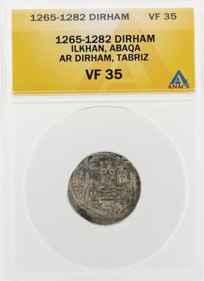 One 1265-1282 Dirham Ilkhan Abaqa AR Dirham Tabriz Coin ANACS VF35. ANACS Appraised.