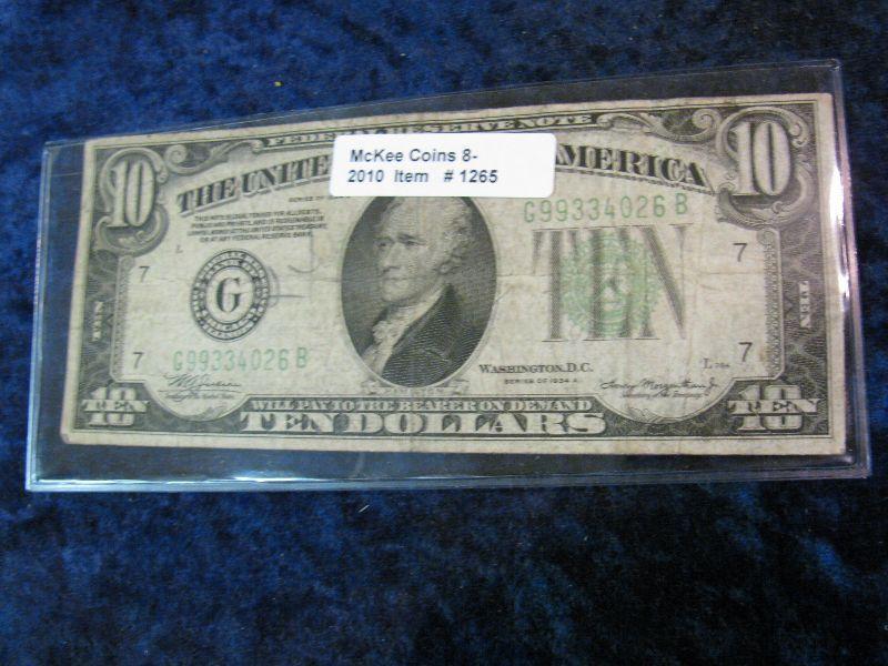 1265. Series 1934A $10. Federal Reserve Note.