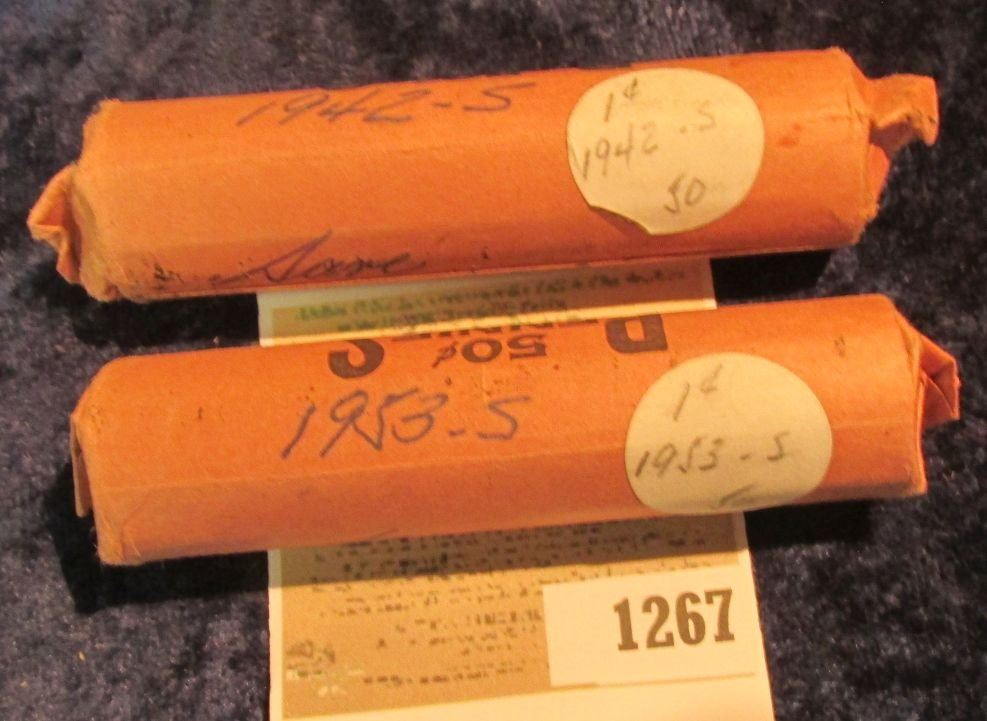 1267 _ 1942 S & 53 S Solid Date Rolls of Lincoln Cents. Circulated. (2 rolls).