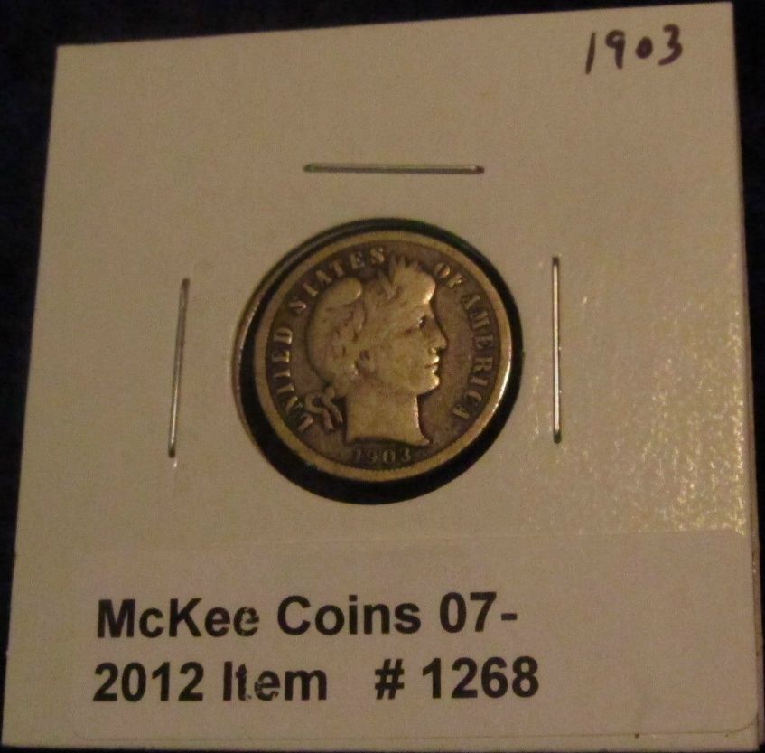 1268. 1903 P Barber Dime. F-12.