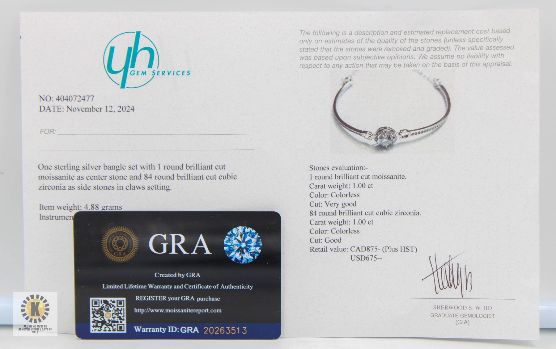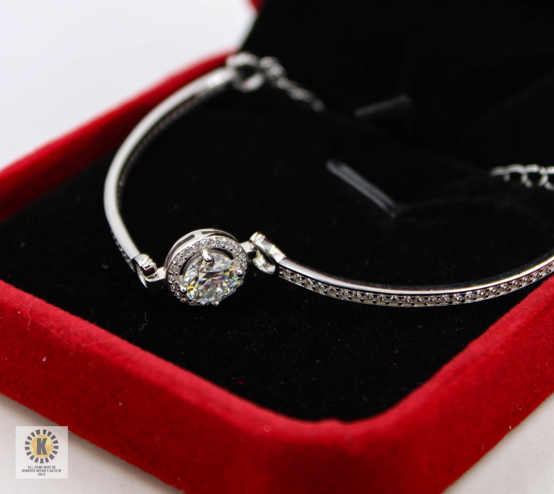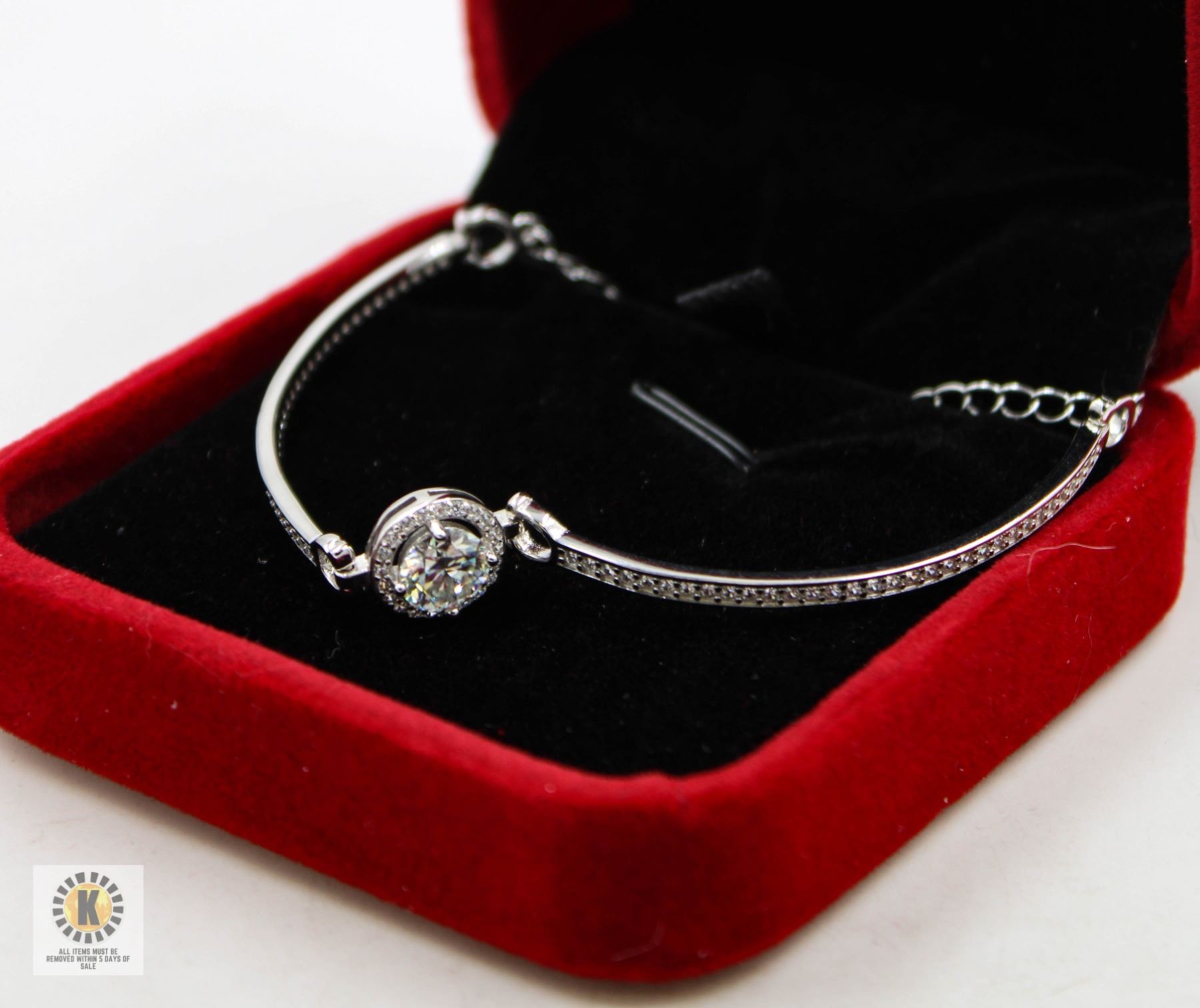 CUT MOISSANITE STONE VVS D COLOR SET WITH 84 ROUND BRILLIANT CUT CUBIC ZIRCONIA'S SET IN ROUND HALO AND IN BRACELETS SET IN 925 SILVER BRACELET RETAIL VALUE $875.00