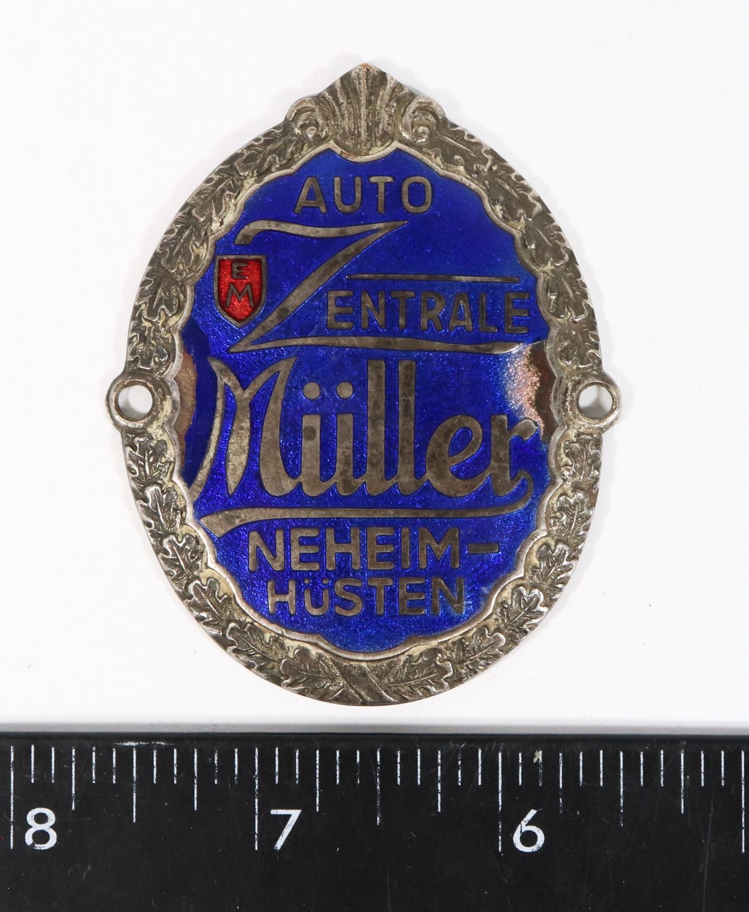 AUTO ZENTRALE MÜLLER NEHEIM-HÜSTEN BADGE EARLY 20TH CENTURY VINTAGE AUTOMOTIVE HI