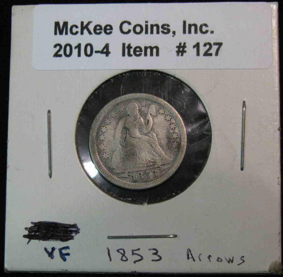 127. 1853 Arrows Seated Liberty Dime. F-12.