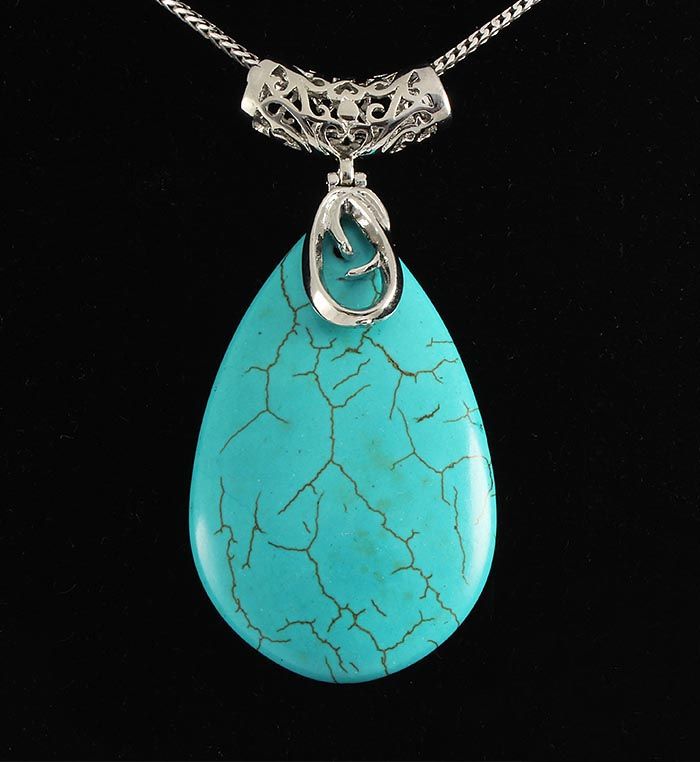127.42CTW BIG TEARDROP TURQUOISE IN SILVER PENDANT **|**|** 52.85X33.53MM BIG PEAR SHAPE TURQUOISE WITH ANTIQUE DESIGN SILVER PENDANT ; MSRP: $100