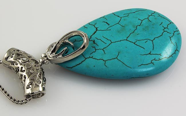 127.42CTW BIG TEARDROP TURQUOISE IN SILVER PENDANT **|**|** 52.85X33.53MM BIG PEAR SHAPE TURQUOISE WITH ANTIQUE DESIGN SILVER PENDANT ; MSRP: $100