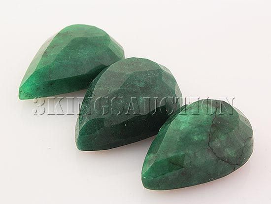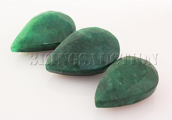 127.78ctw Faceted Loose Emerald Beryl Gemstone Lot of 3 **|**|** Mix Sizes Pear Shape Faceted Emerald Beryl Loose Gemstone ; MSRP: $1000