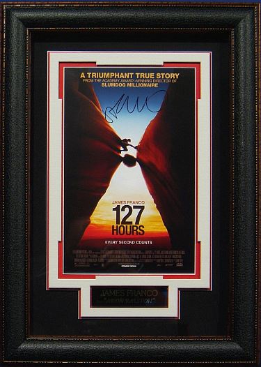127 Hours is a 2010 British-American biographical survival drama film directed, co-written, and produced by Danny Boyle. It stars James Franco as real-life canyoneer Aron Ralston, who became trapped by a boulder in an isolated slot canyon in Blue John Canyon, southeastern Utah, in April 2003. 127 Hours was well received by critics and audiences, and was nominated for six Academy Awards, including Best Actor for Franco and Best Picture.This is an signed Publicity Masterprint 11x17 inch movie poster with museum Quality Leather Framing as shown to an overall size of 22x30. James Franco has hand signed this poster. The perfect addition to complement any Home Theater Collection. Witnessed, Examined, and Certified Authentic (Lifetime) by Millionaire Gallery, Inc.