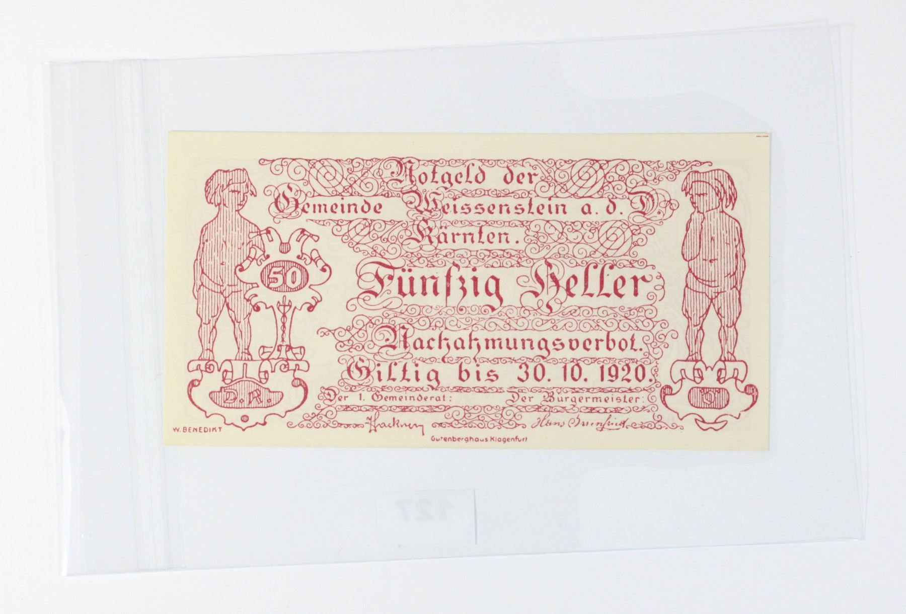 OcTober 30th 1920 Post World War One Reconstruction Period Emergency Money Notgeld "Not Gold" Paper Money Bill Banknote issued by Austrian Towns and Cities - Austria 1900's 20th Century