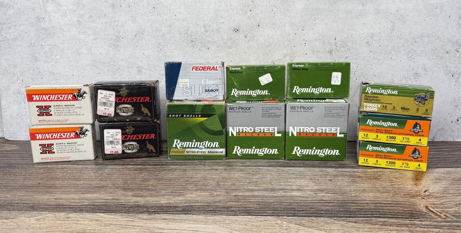Slugs, Turkey Loads, Waterfowl Loads and more. California and New York Shipments requires this lot to be sent to an FFL Dealer.